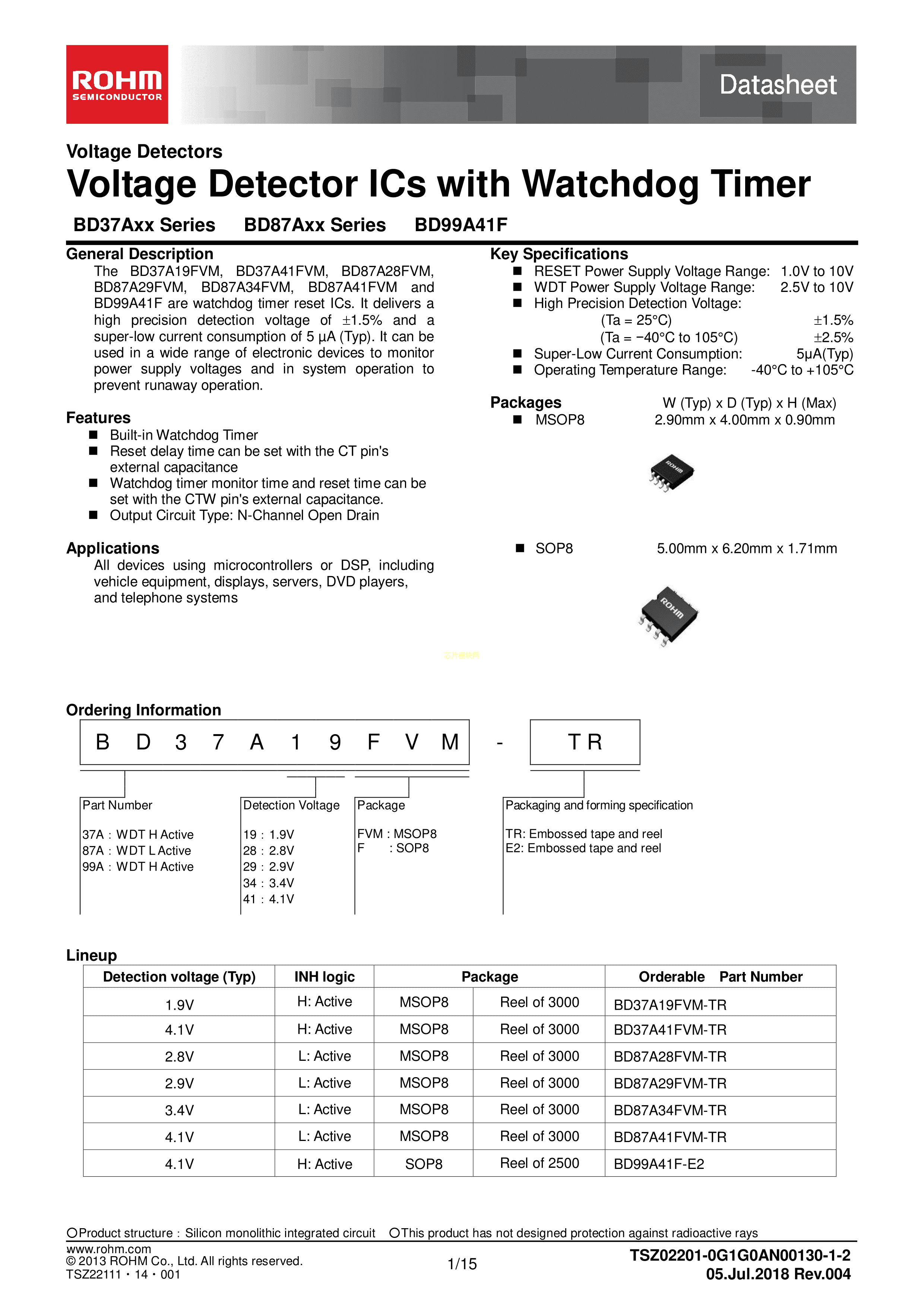 BD87A41FVM-TR数据手册MSOP-8封装ROHM(罗姆)PDF规格书,中英文下载