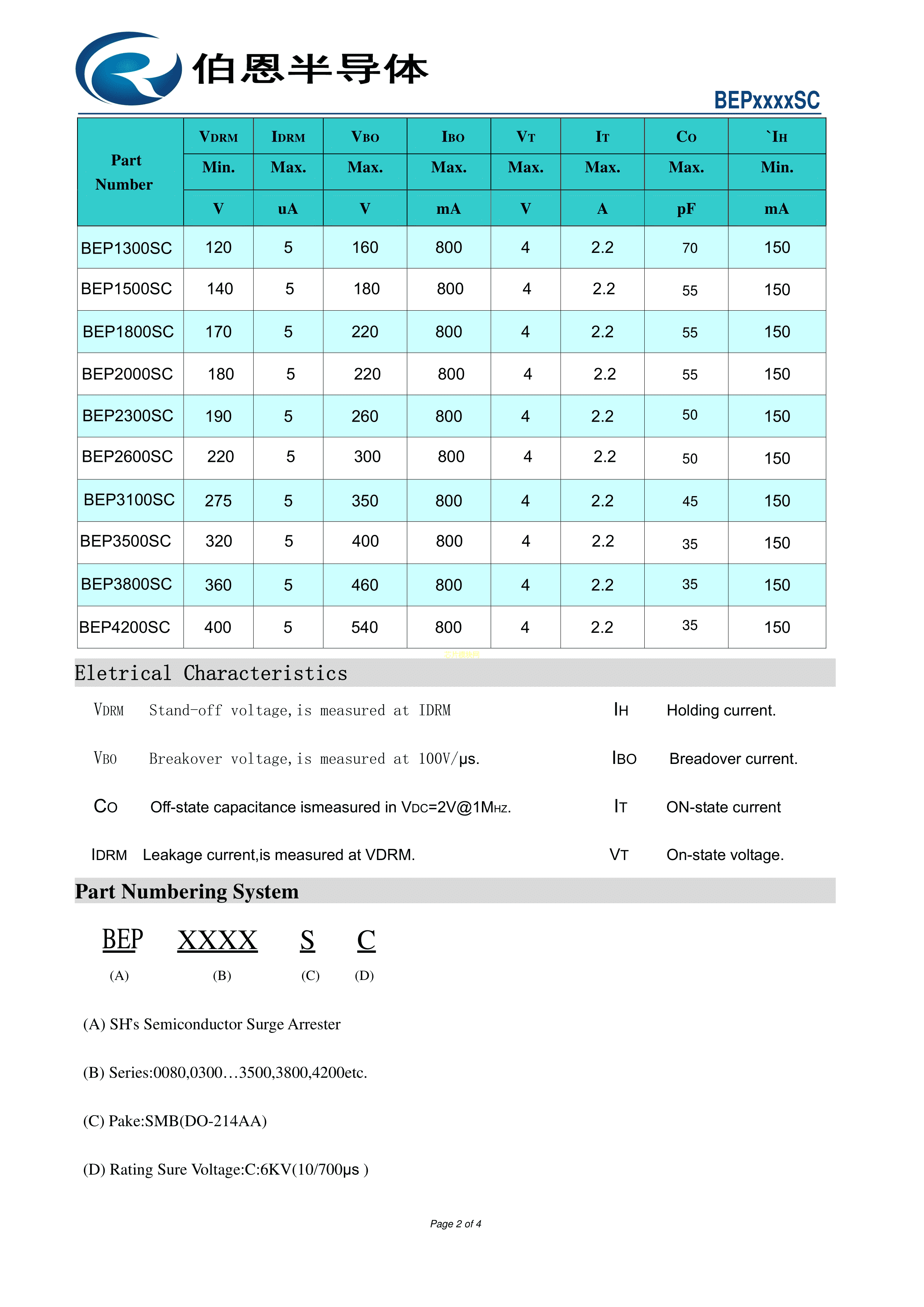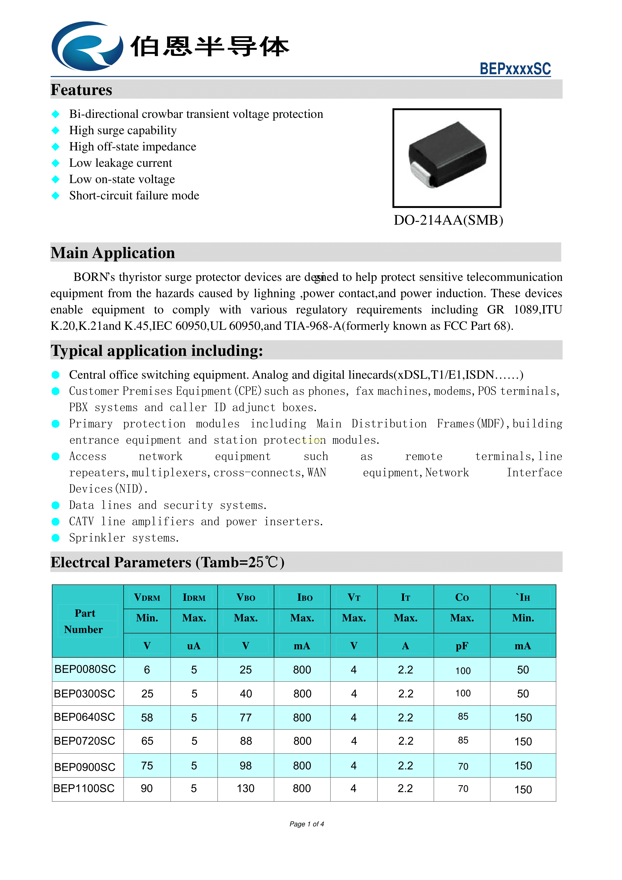 BEP0300SB数据手册SMB封装BORN(伯恩半导体)PDF规格书,中英文下载