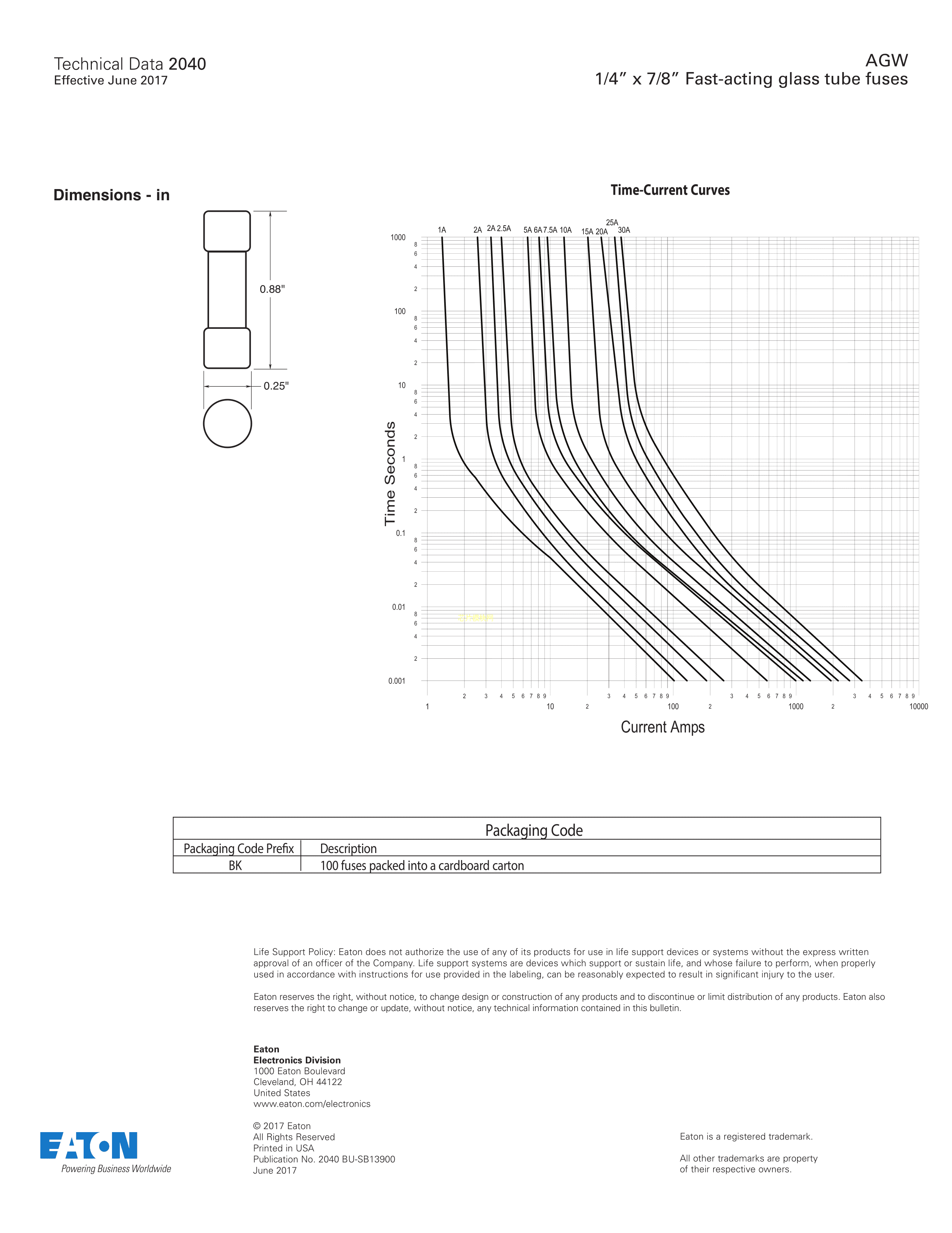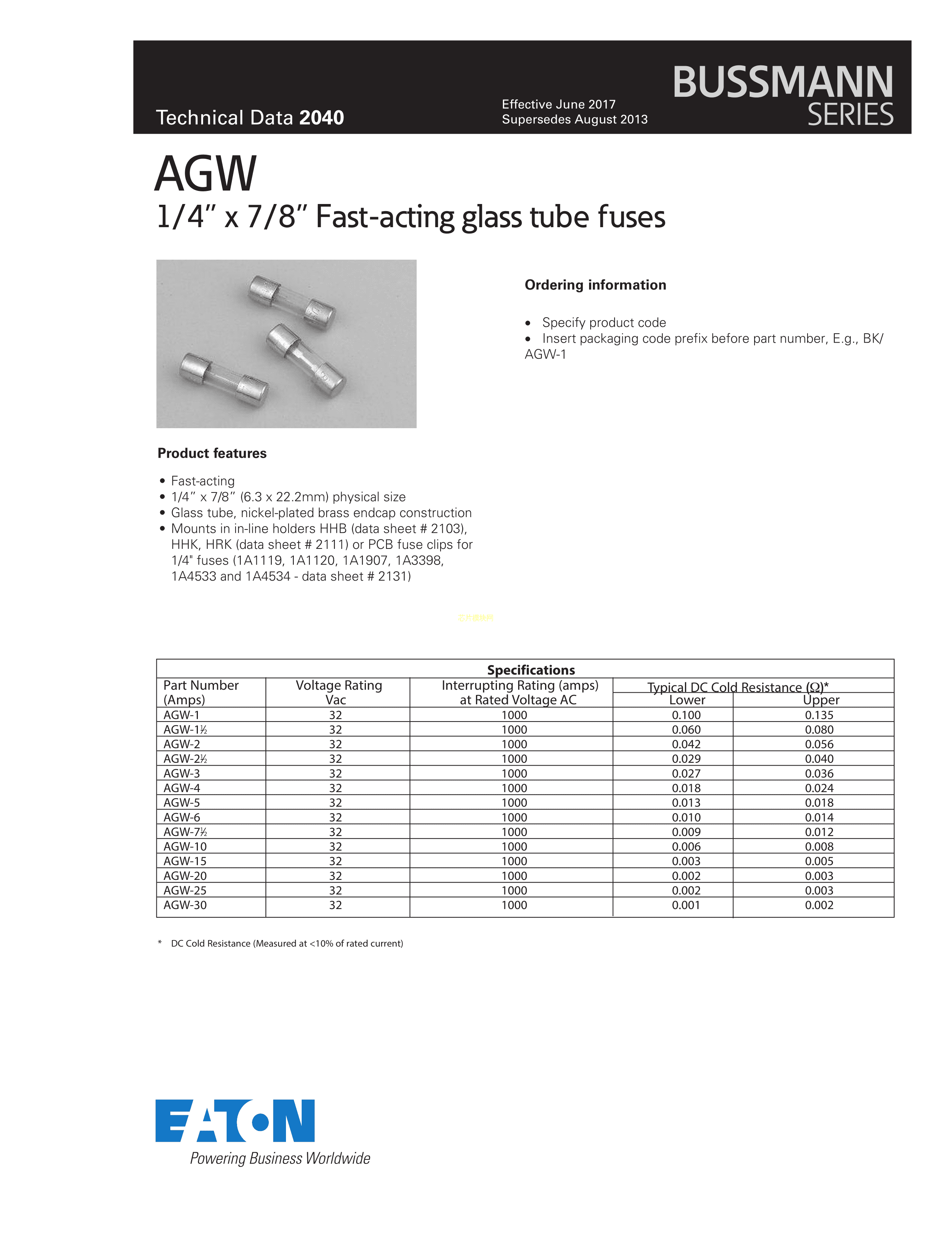 BK-AGW-15数据手册管6.3x22.2mm封装EATON(伊顿)PDF规格书,中英文下载