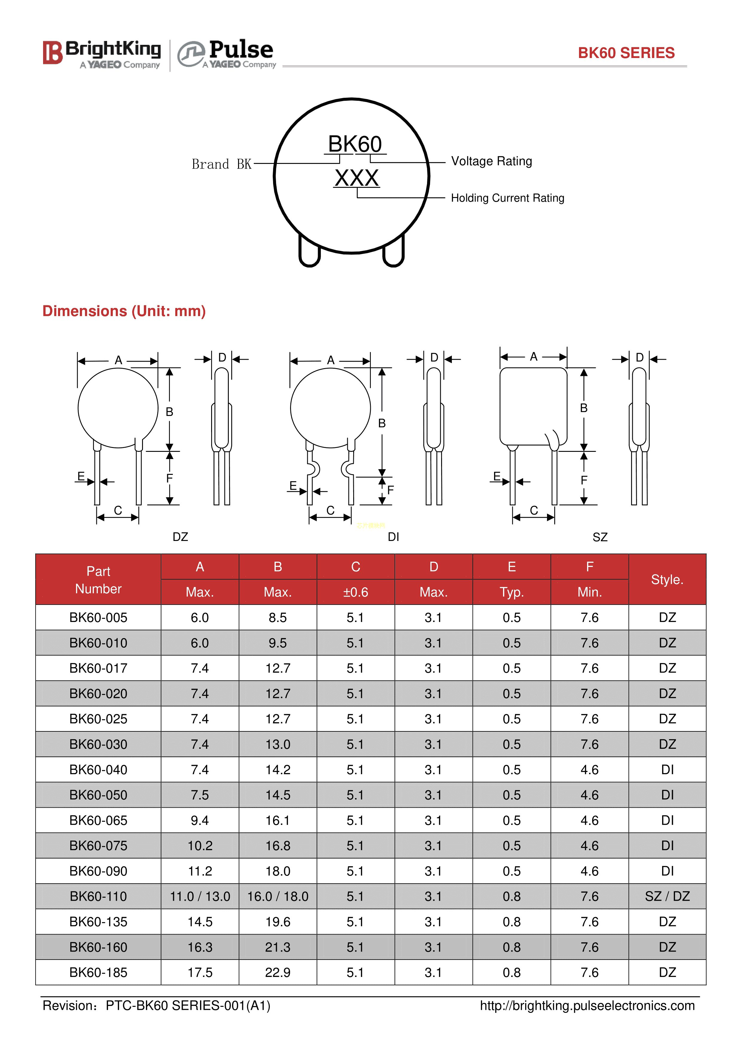 BK60-017-DI数据手册径向引线封装Brightking(台湾君耀)PDF规格书,中英文下载