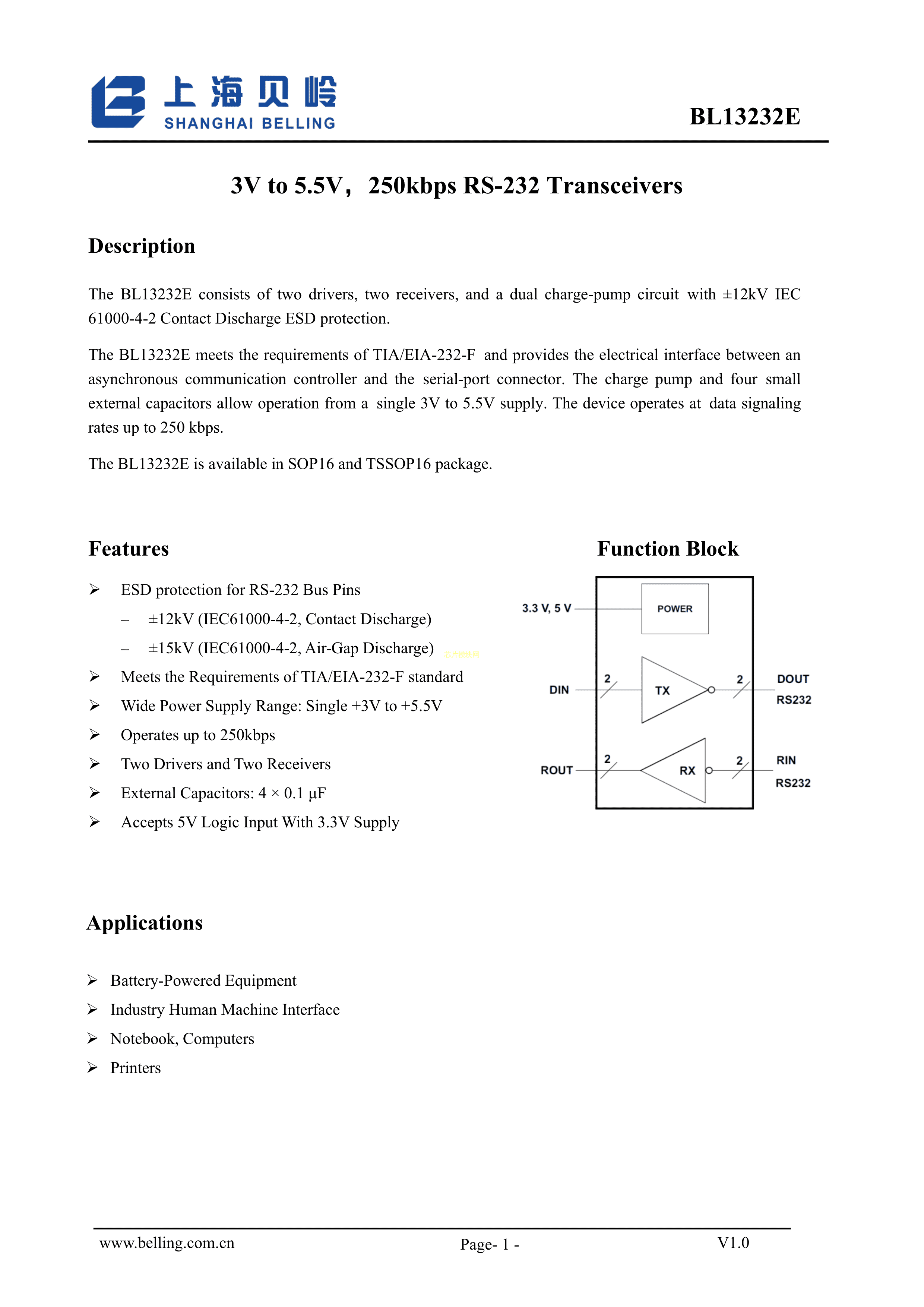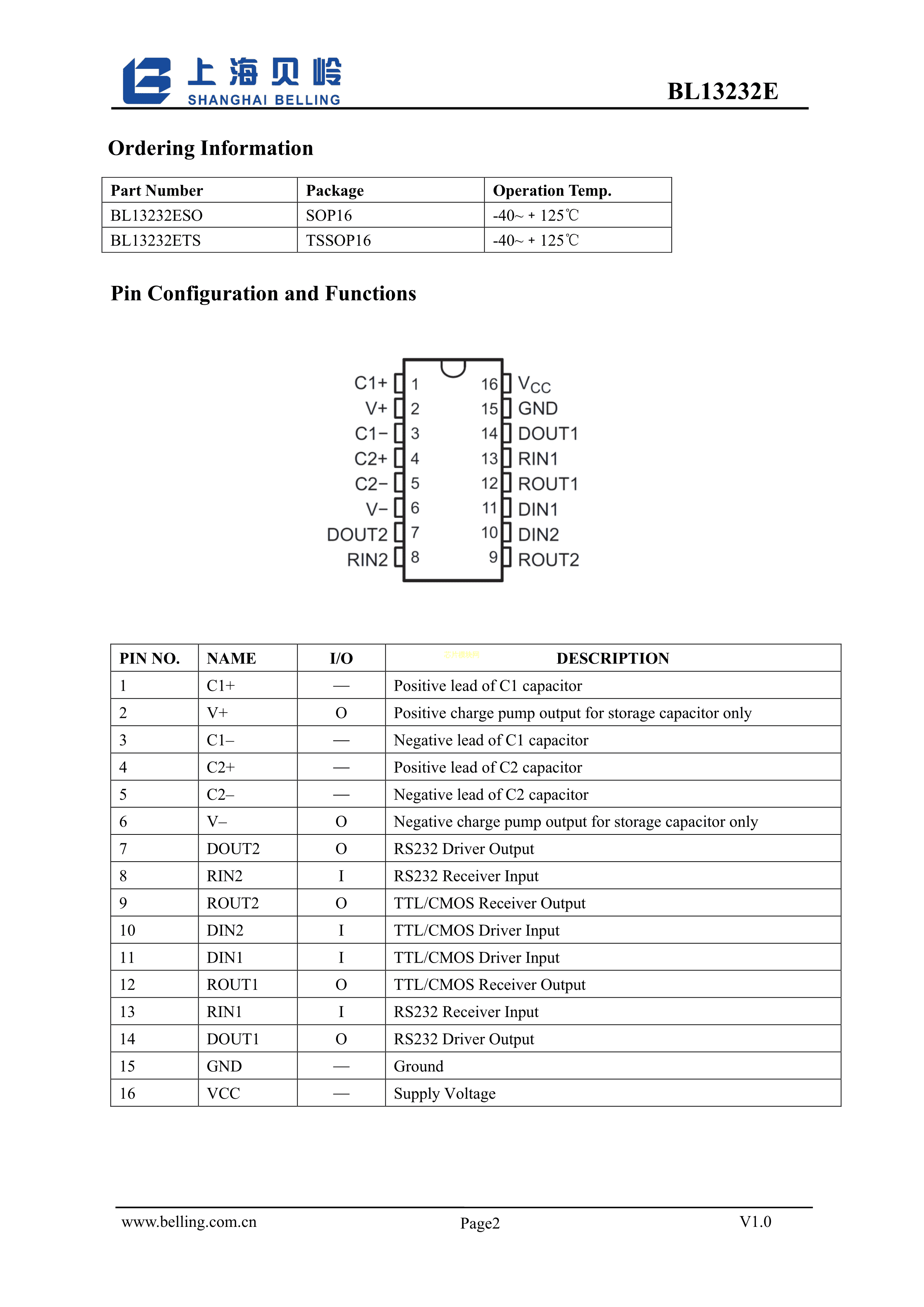 BL13232ETS数据手册TSSOP16封装BL(上海贝岭)PDF规格书,中英文下载
