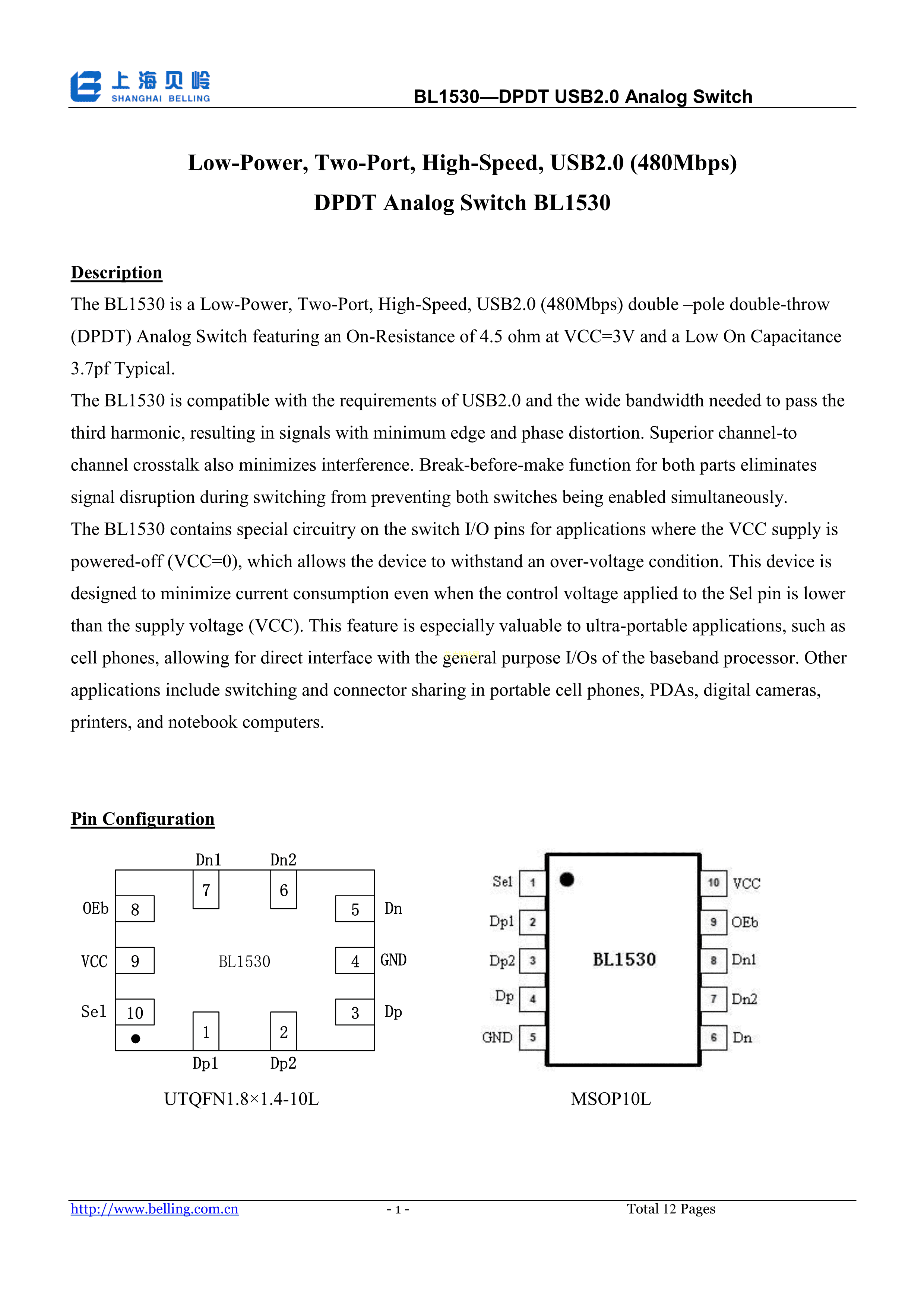 BL1530数据手册MSOP-10L封装BL(上海贝岭)PDF规格书,中英文下载
