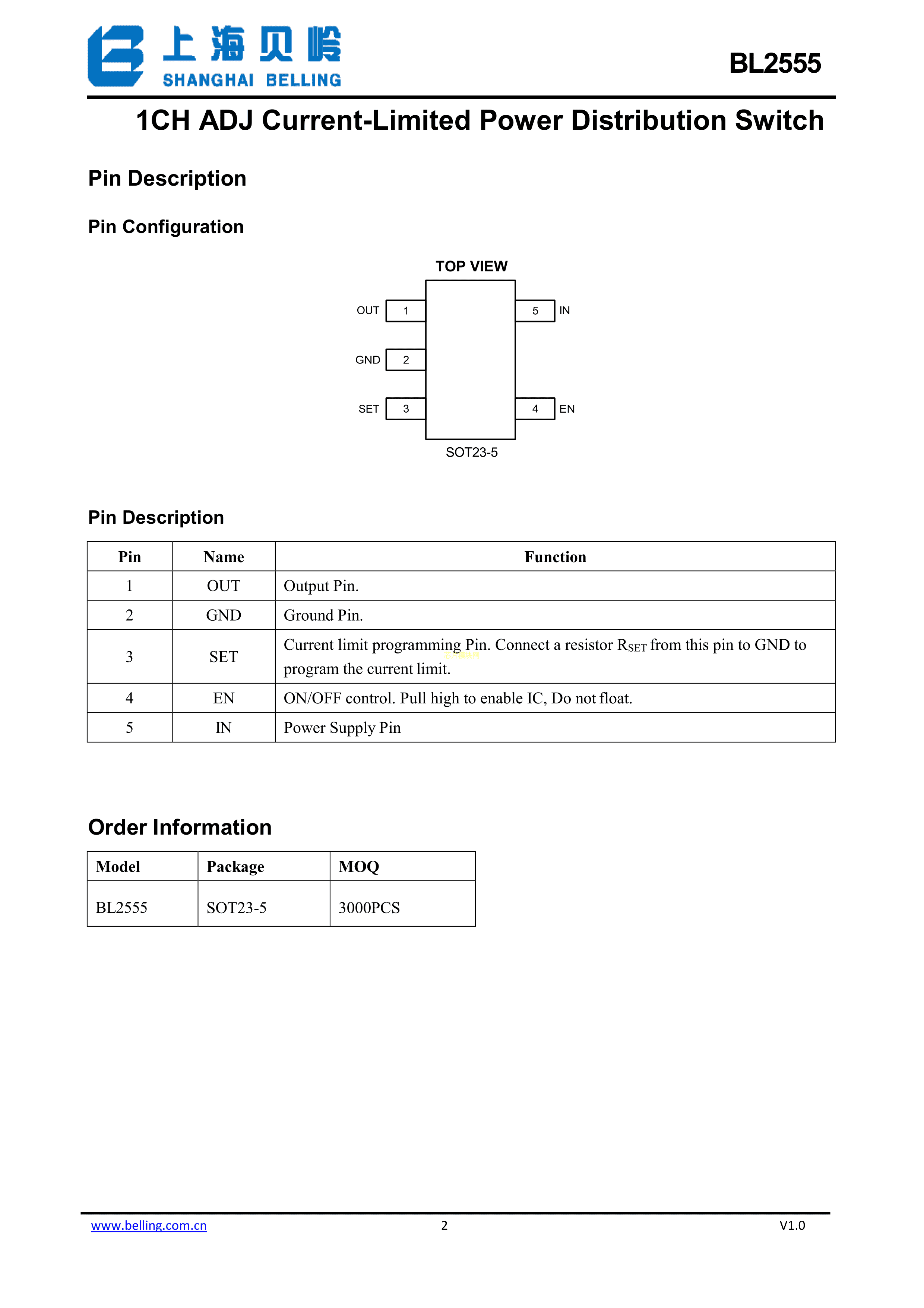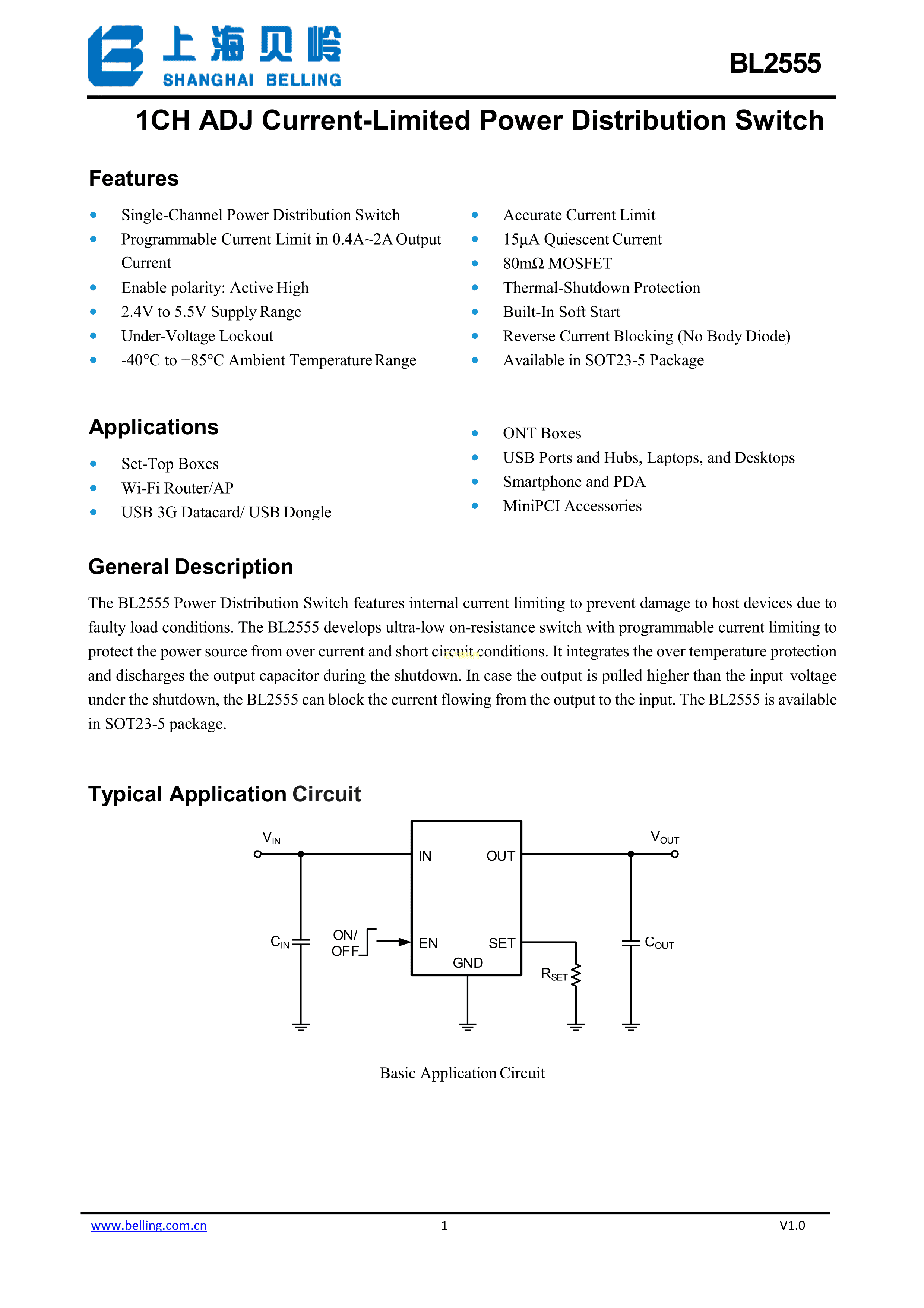 BL2555数据手册SOT-23-5L封装BL(上海贝岭)PDF规格书,中英文下载