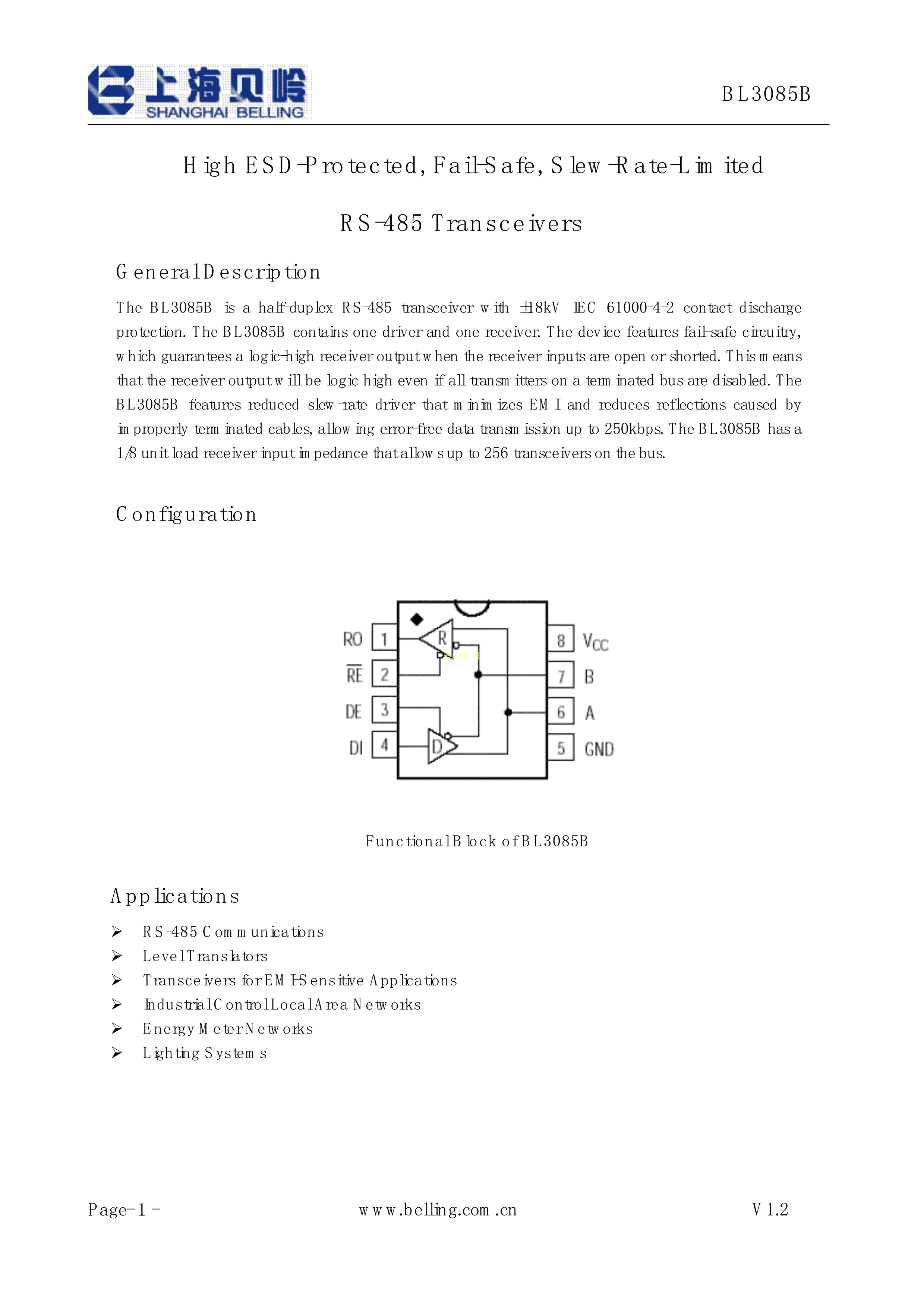 BL3085B数据手册SOIC-8_150mil封装BL(上海贝岭)PDF规格书,中英文下载