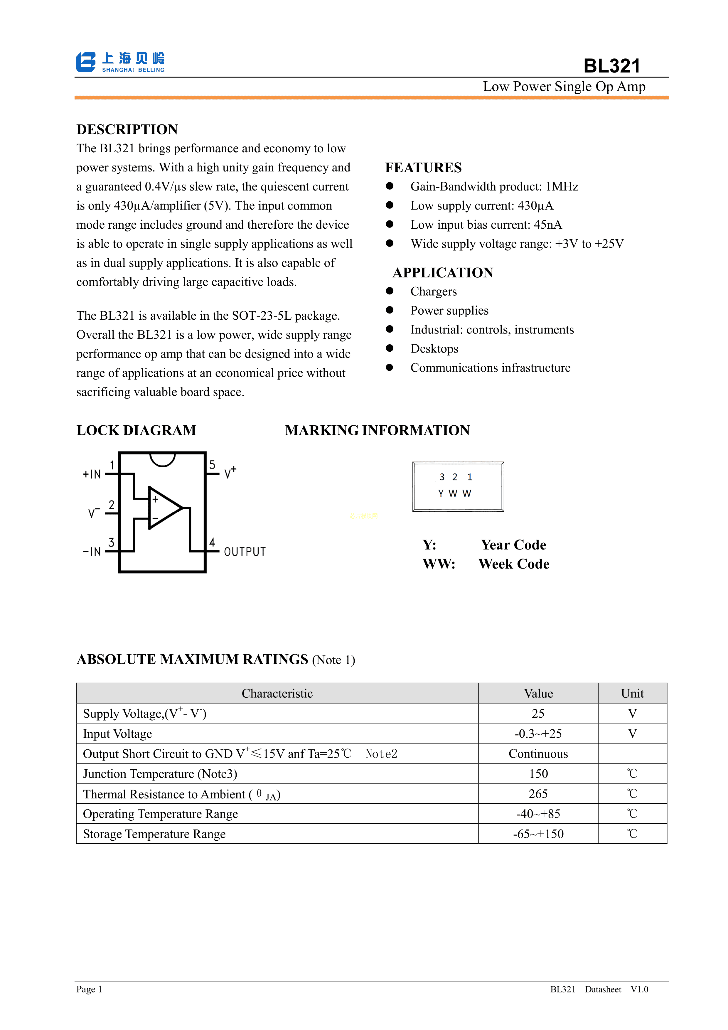 BL321数据手册SOT-23-5封装BL(上海贝岭)PDF规格书,中英文下载