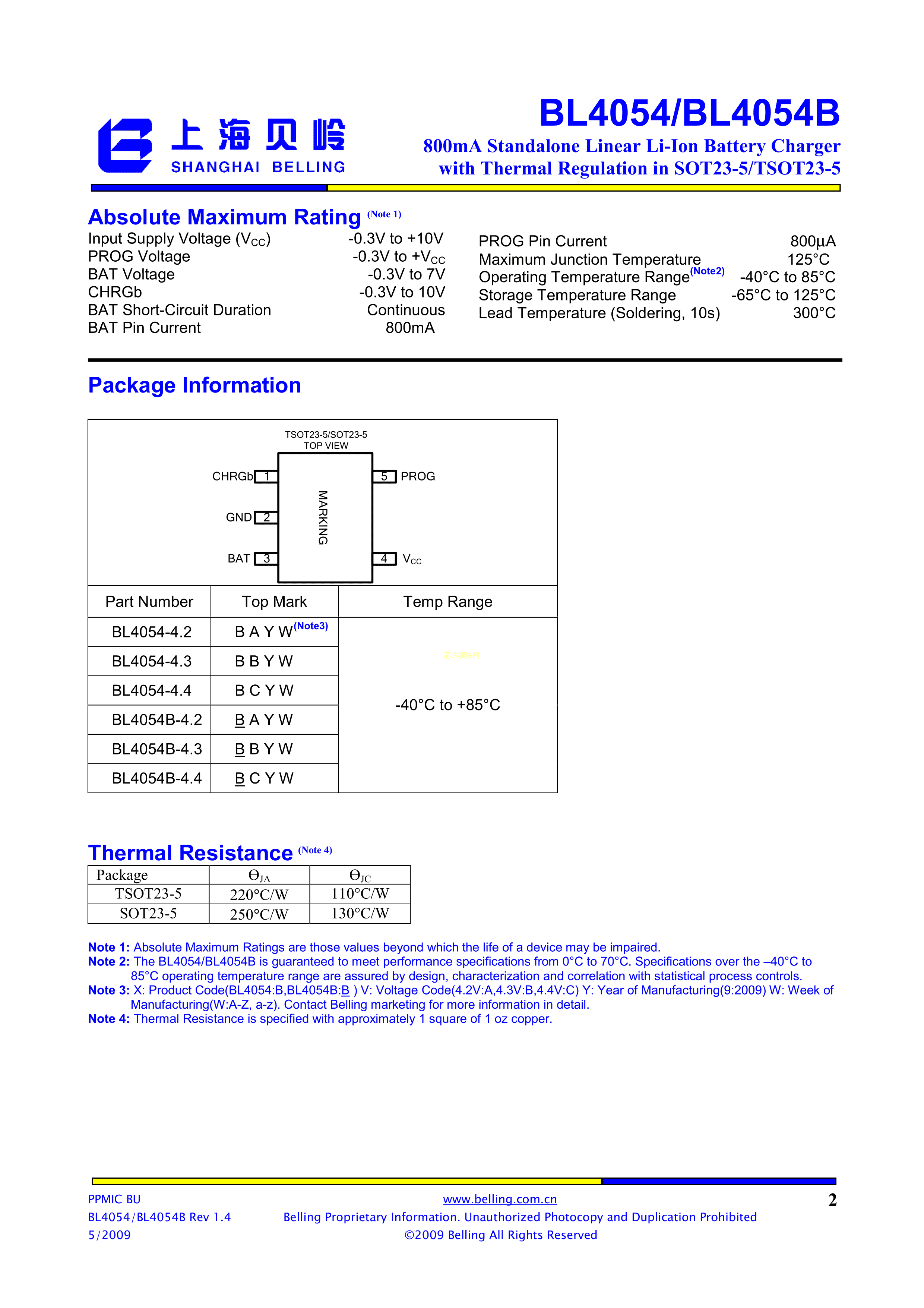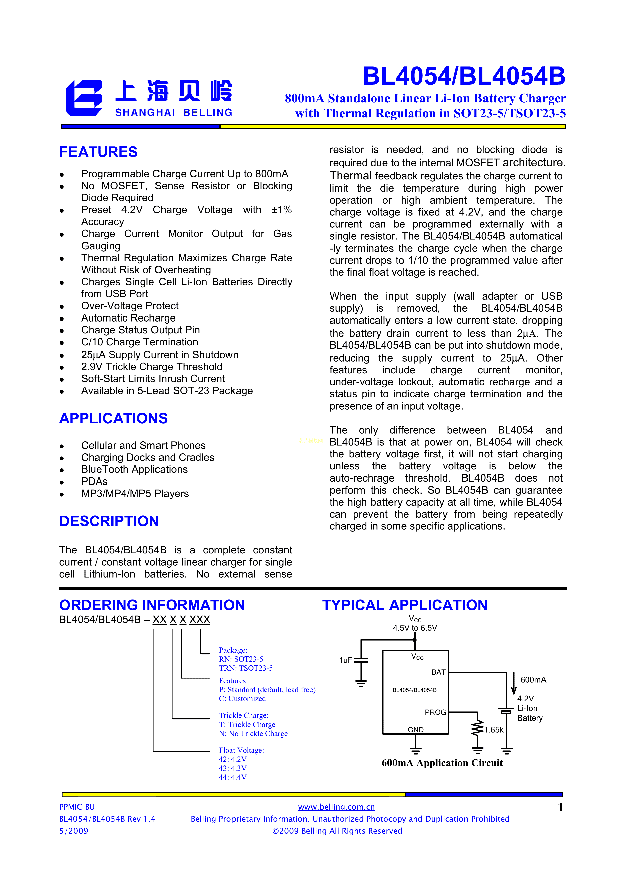 BL4054B-42TPRN数据手册SOT-23-5封装BL(上海贝岭)PDF规格书,中英文下载