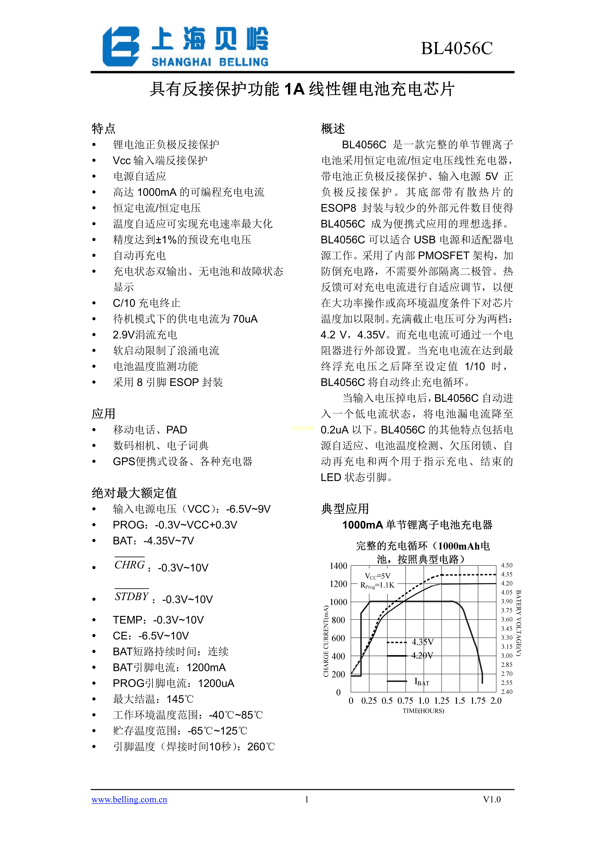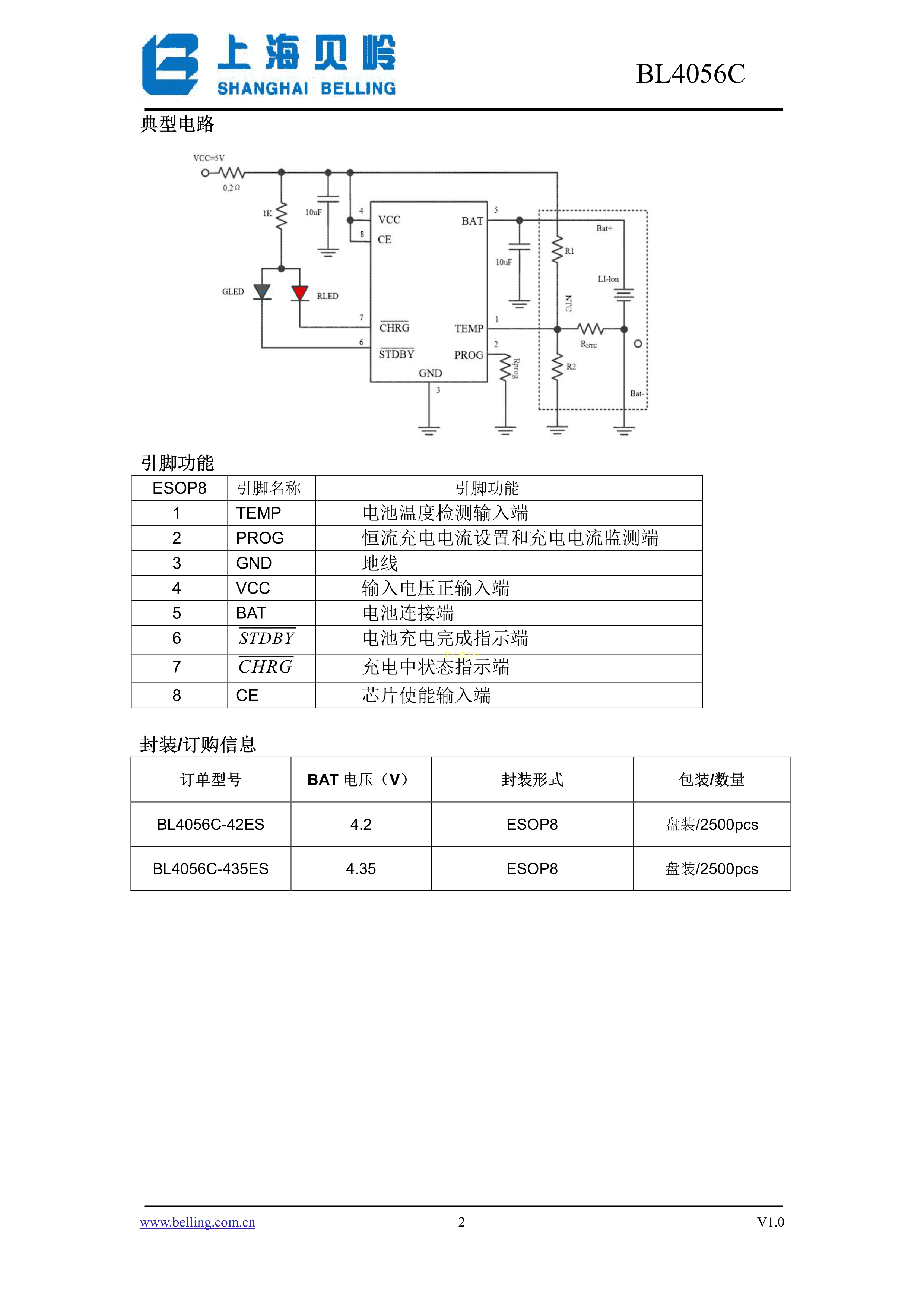 BL4056C-42ES数据手册ESOP-8封装BL(上海贝岭)PDF规格书,中英文下载
