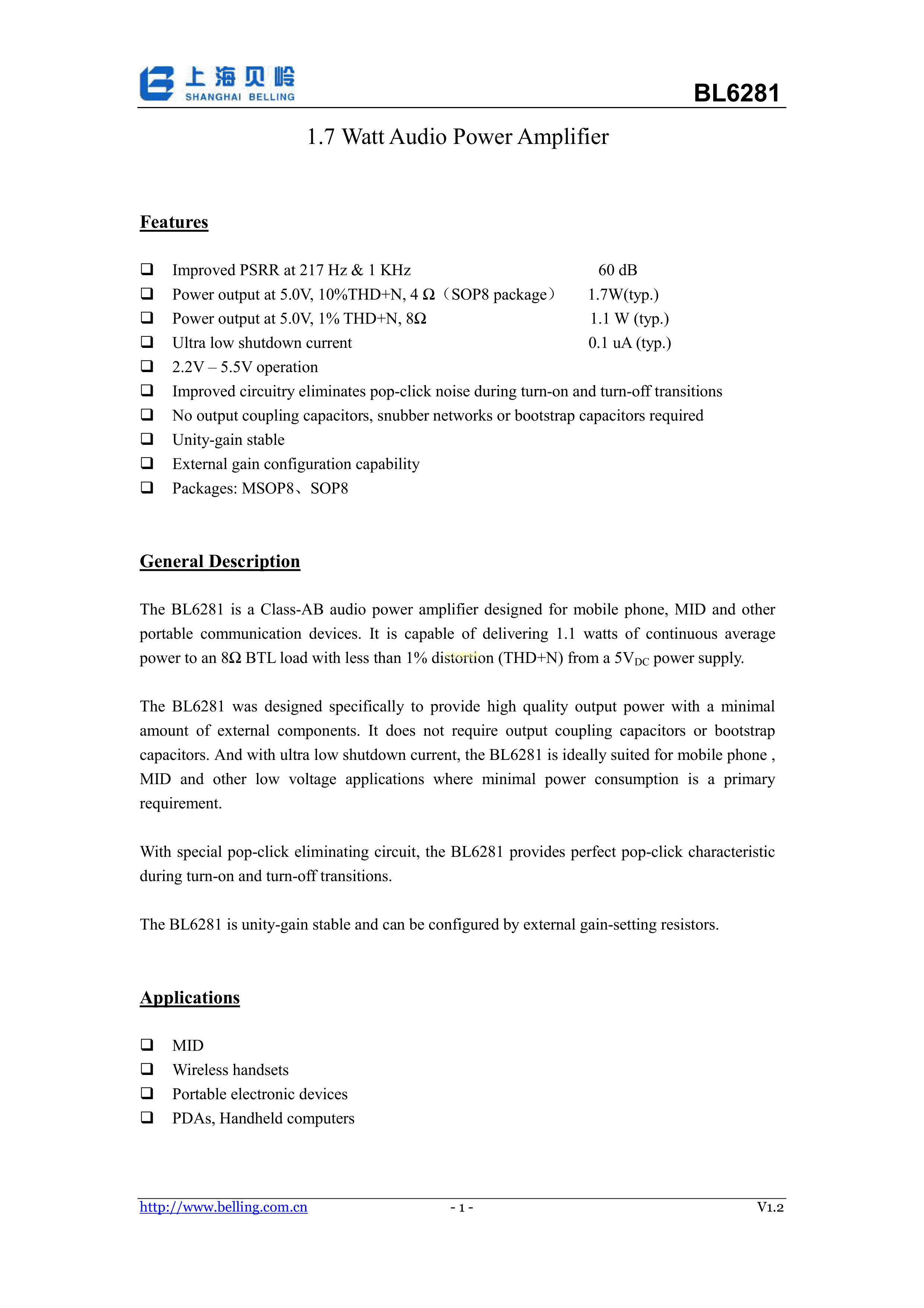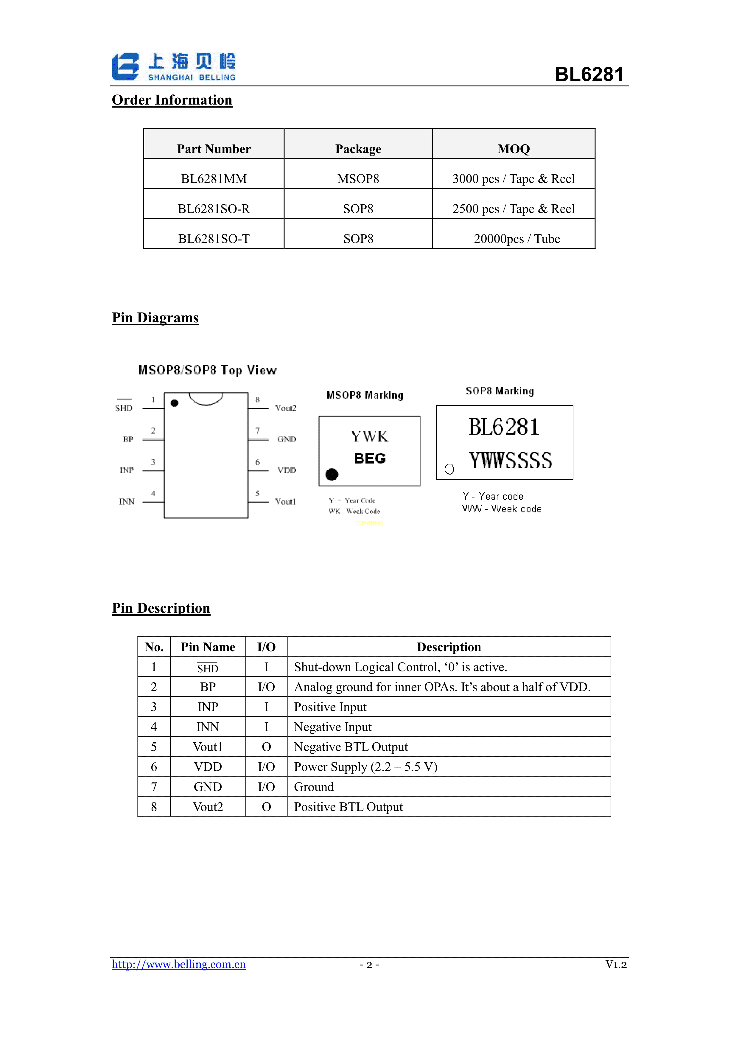 BL6281MM数据手册MSOP-8封装BL(上海贝岭)PDF规格书,中英文下载