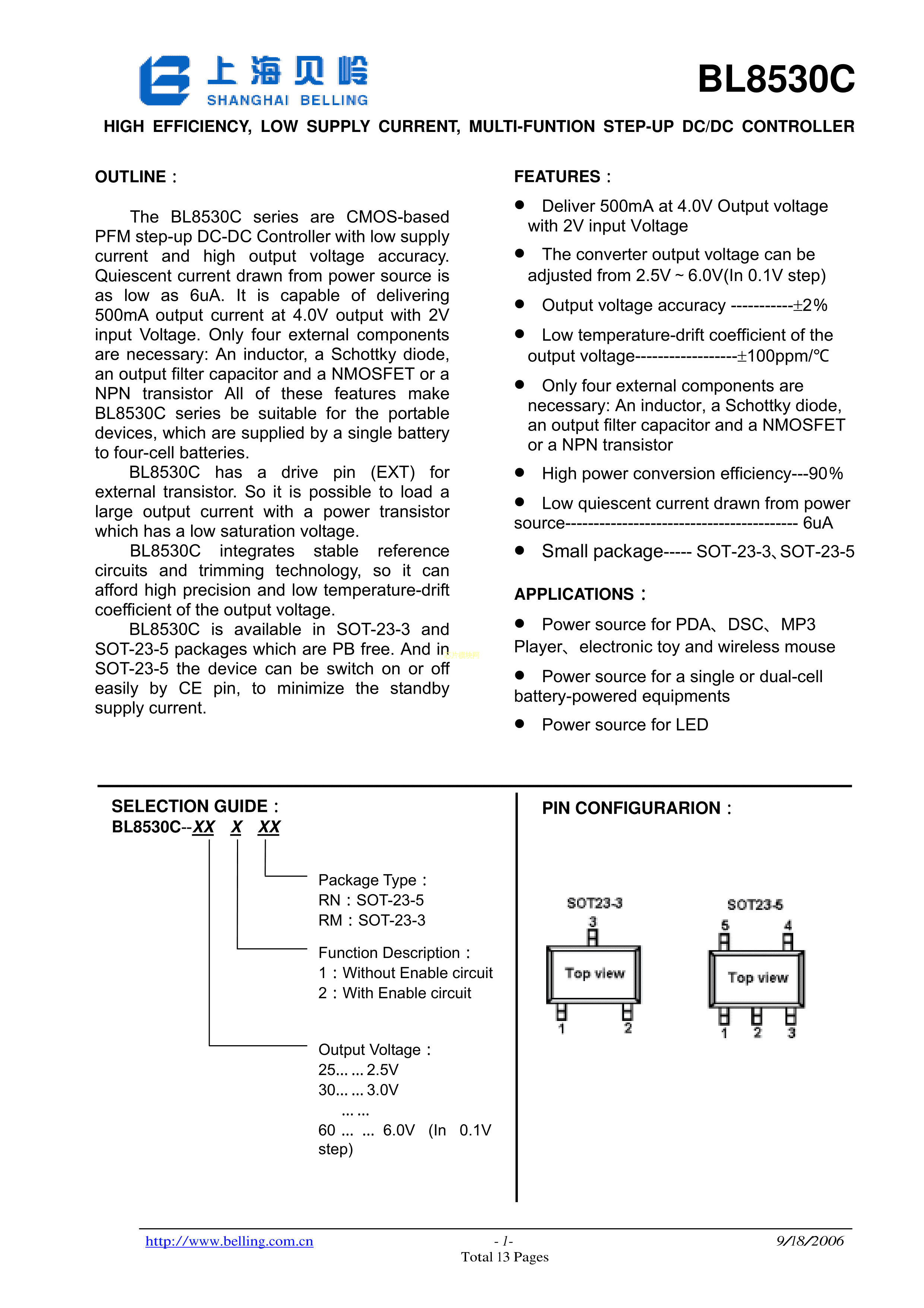 BL8530C-502M数据手册SOT-23-5封装BL(上海贝岭)PDF规格书,中英文下载