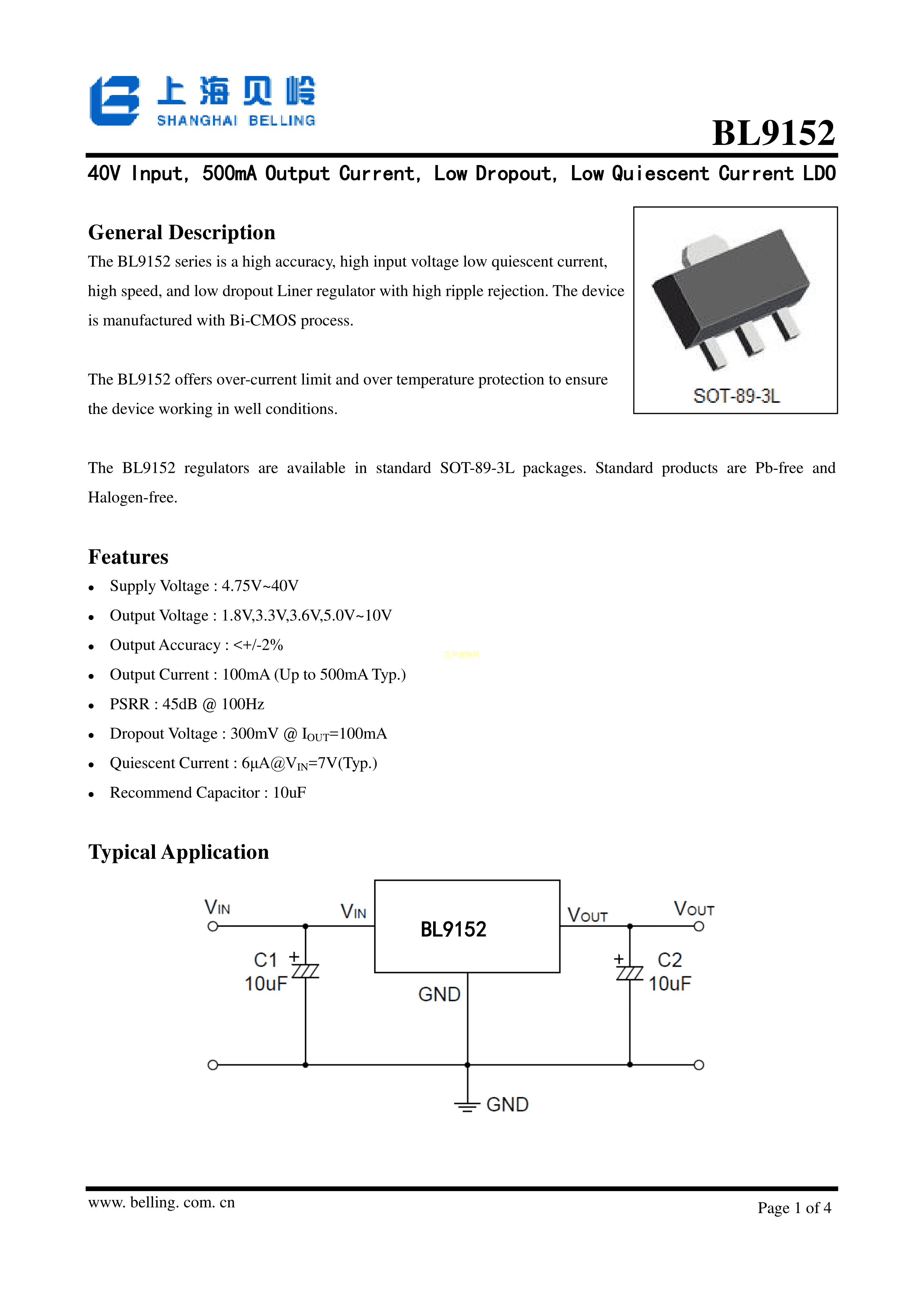 BL9152-3.3数据手册SOT-89-3L封装BL(上海贝岭)PDF规格书,中英文下载