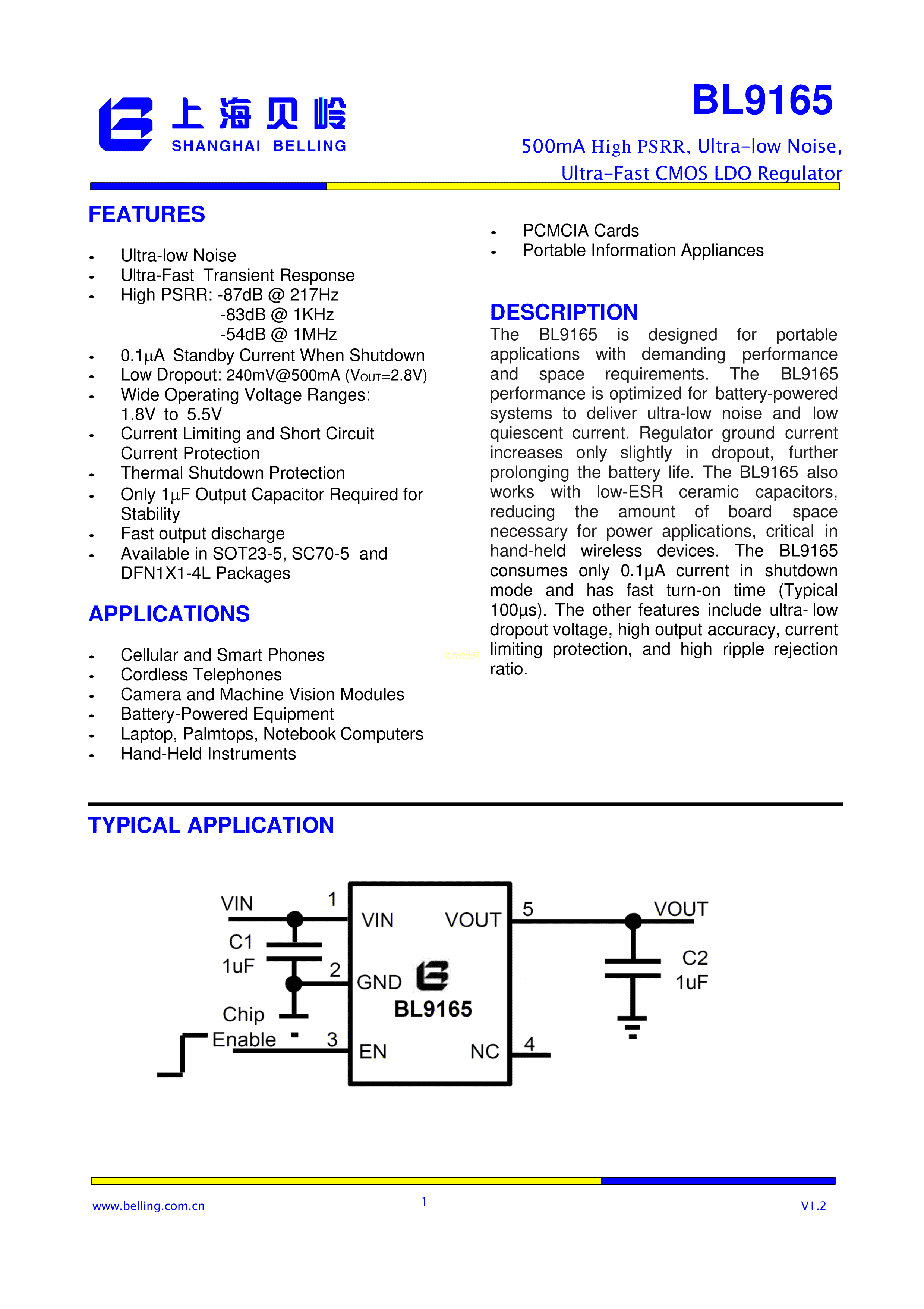 BL9165-180BARN数据手册SOT23-5封装BL(上海贝岭)PDF规格书,中英文下载