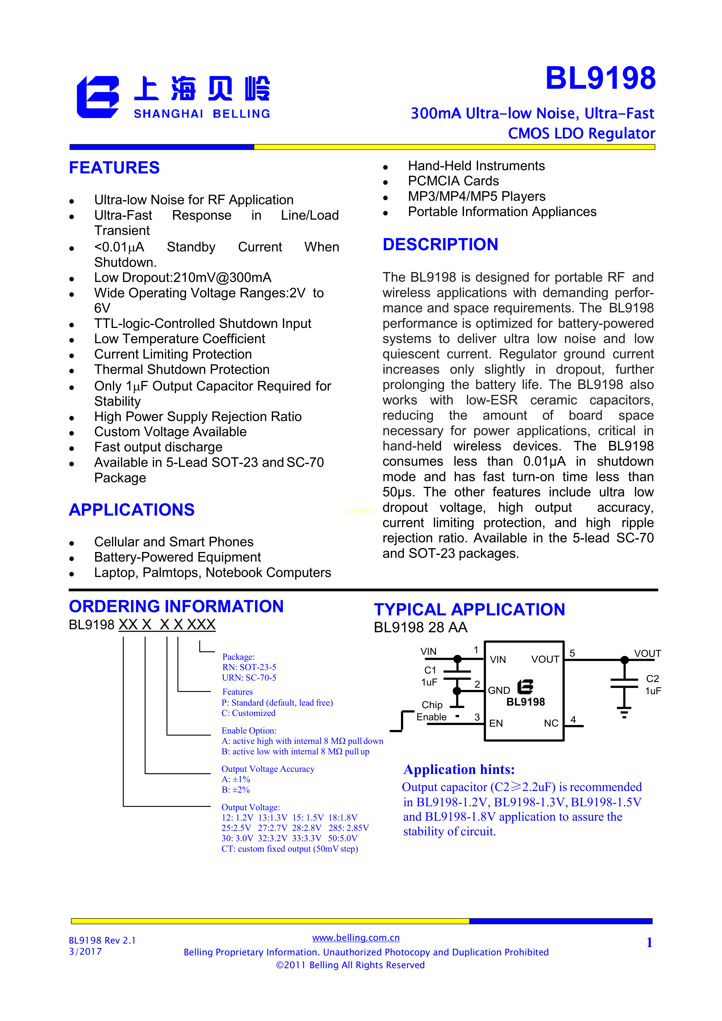 BL9198-30BAPRN数据手册SOT-23-5封装BL(上海贝岭)PDF规格书,中英文下载