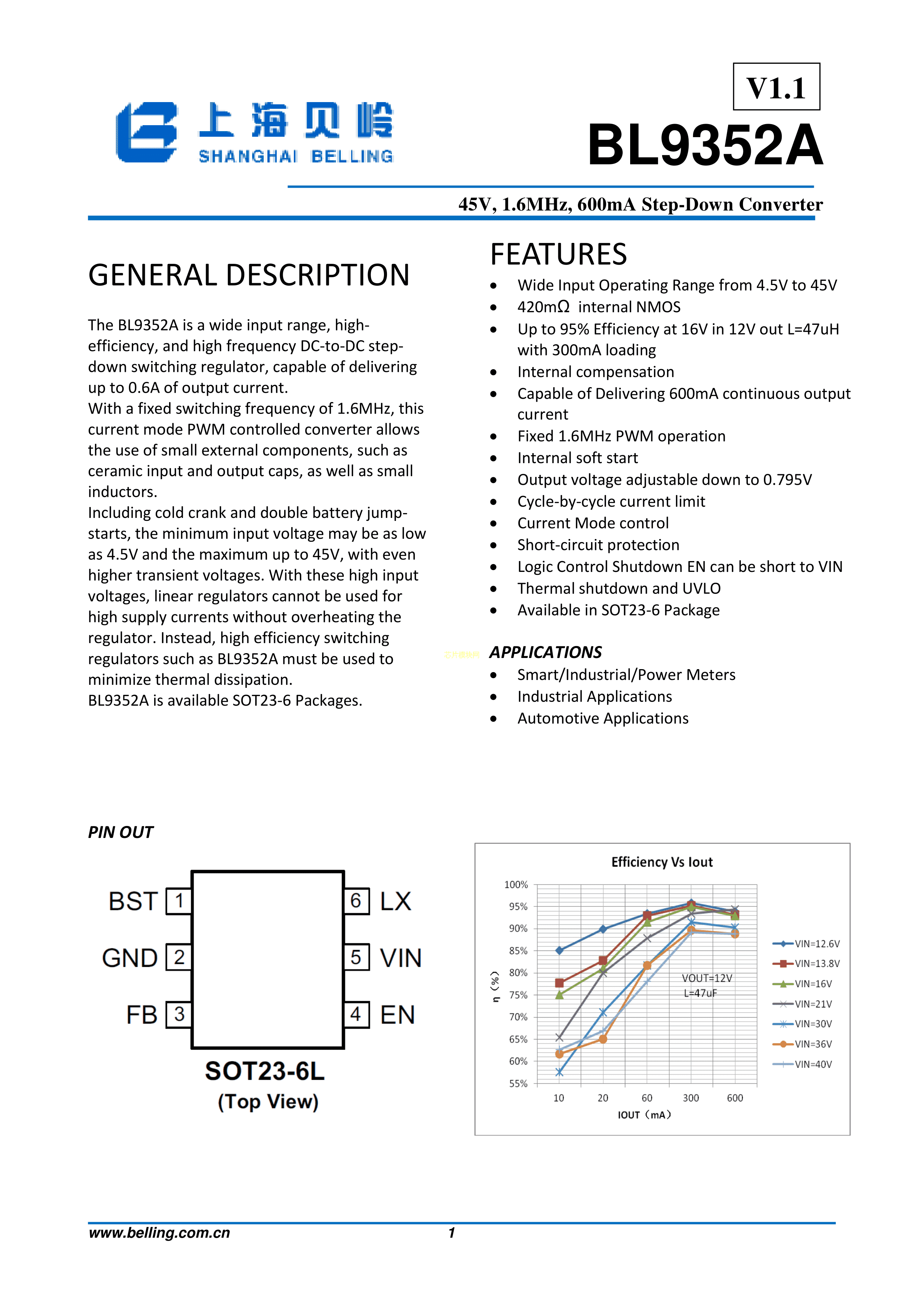 BL9352A数据手册SOT-23-6L封装BL(上海贝岭)PDF规格书,中英文下载
