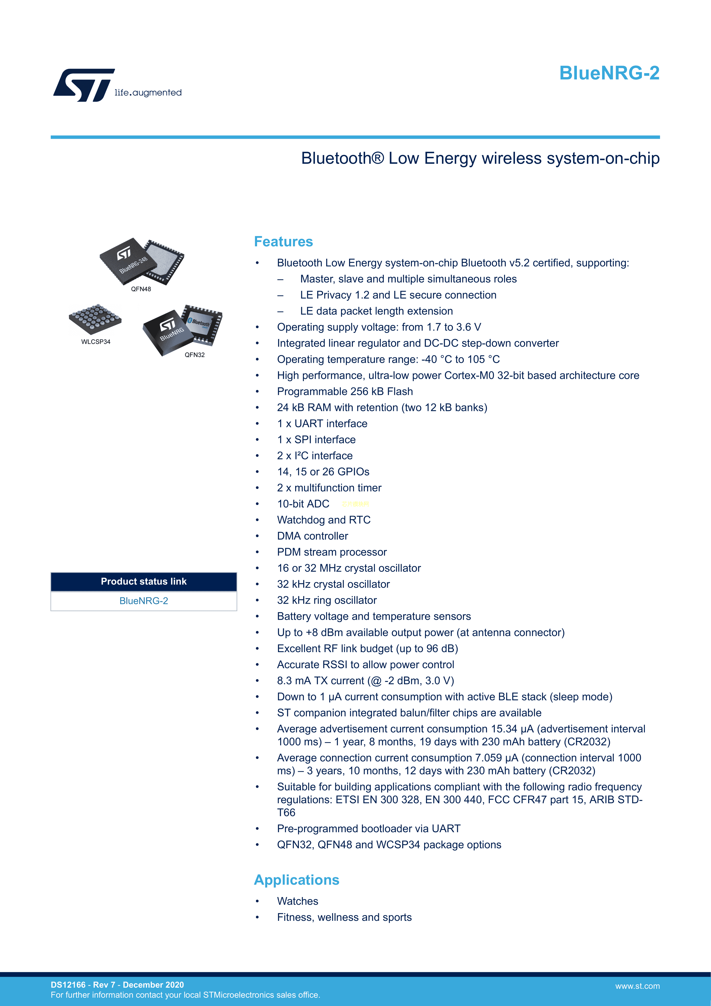 BLUENRG-248数据手册VFQFN-48封装ST(意法半导体)PDF规格书,中英文下载