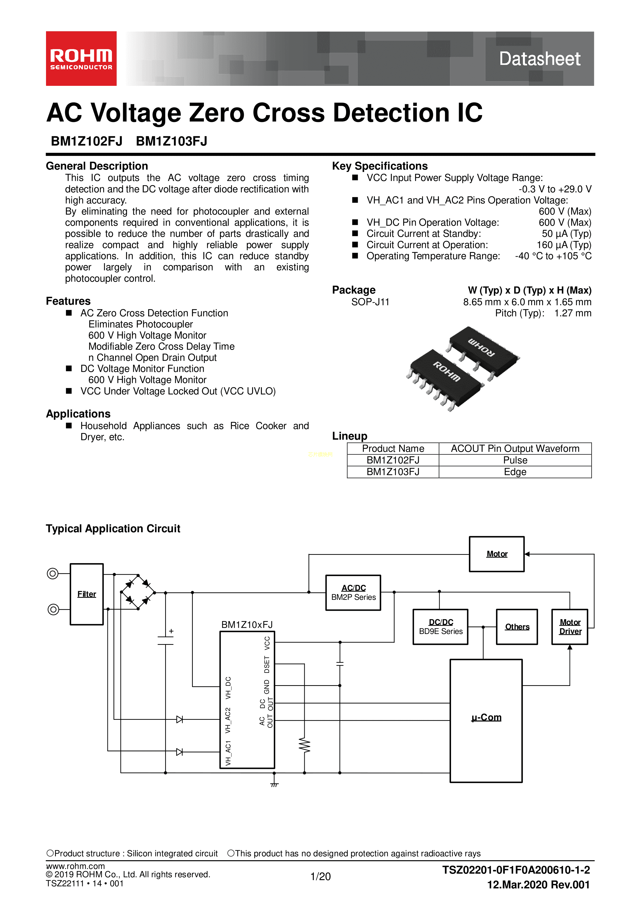 BM1Z103FJ-E2数据手册SOP-11J封装ROHM(罗姆)PDF规格书,中英文下载