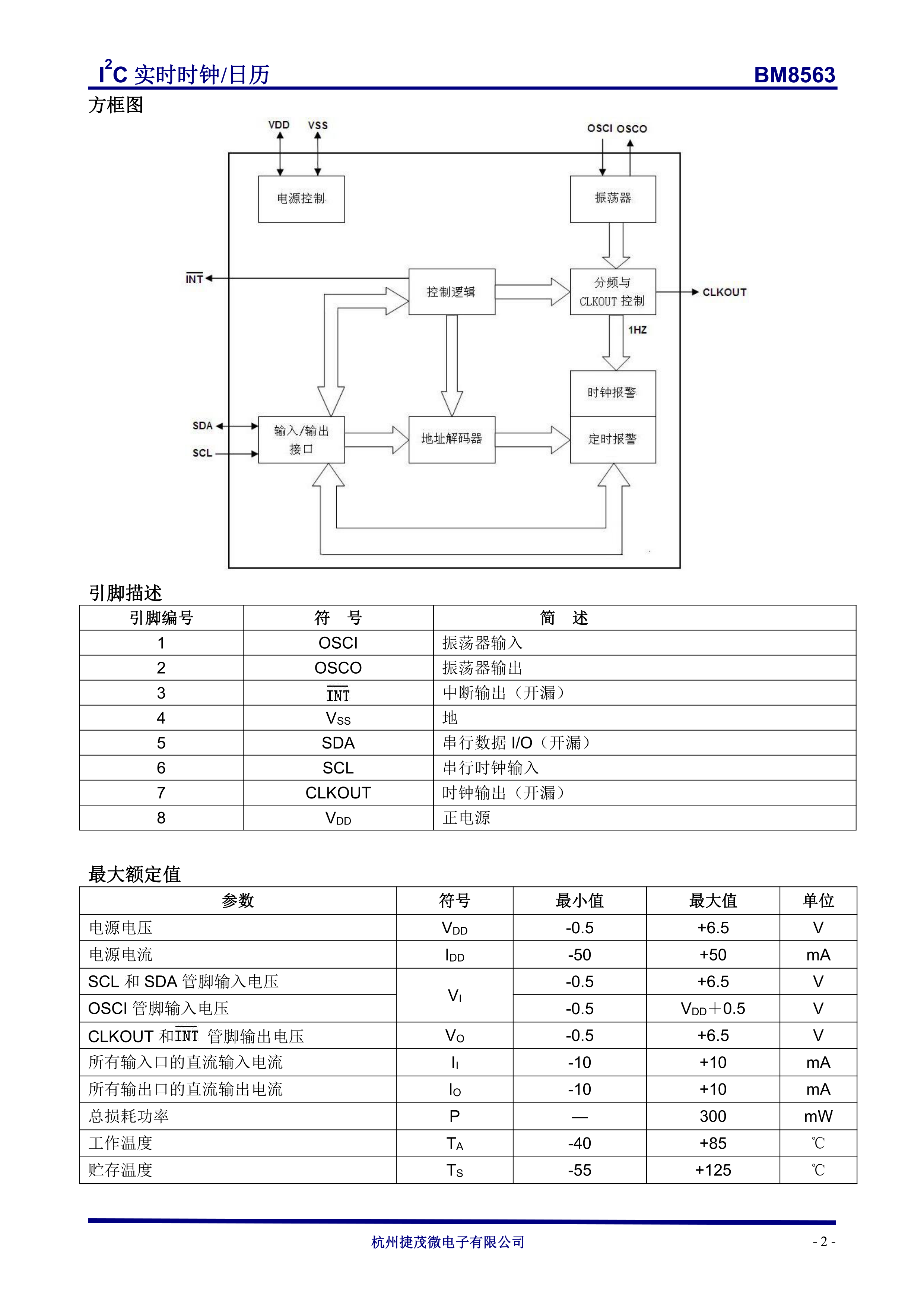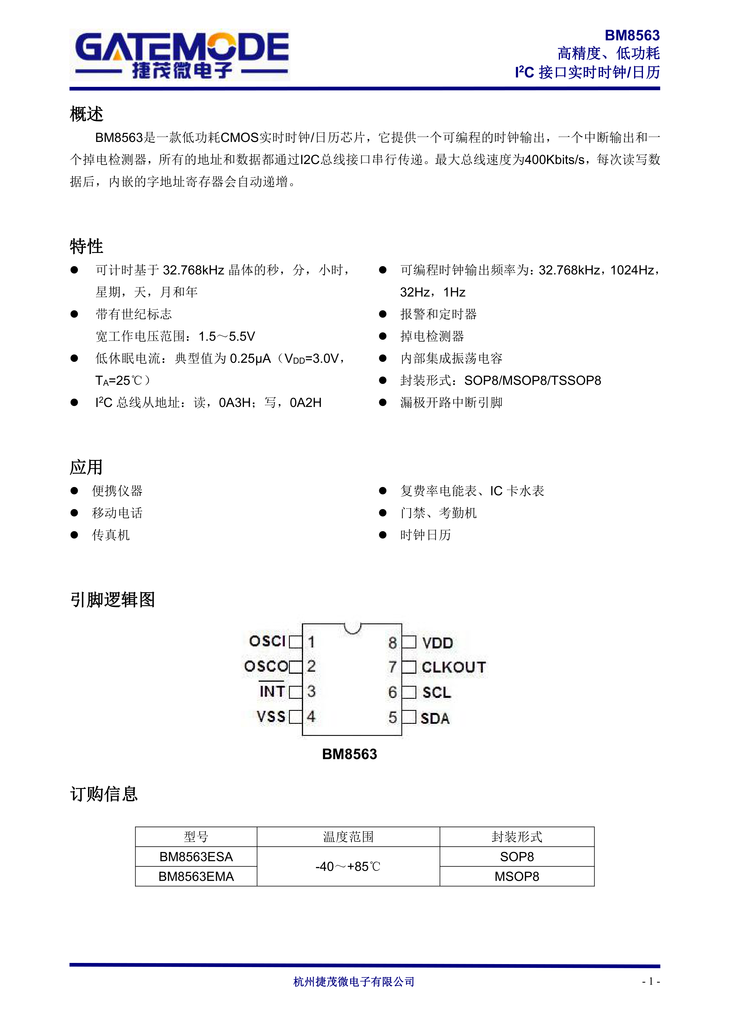 BM8563EMA数据手册MSOP-8封装GATEMODE(捷茂微)PDF规格书,中英文下载