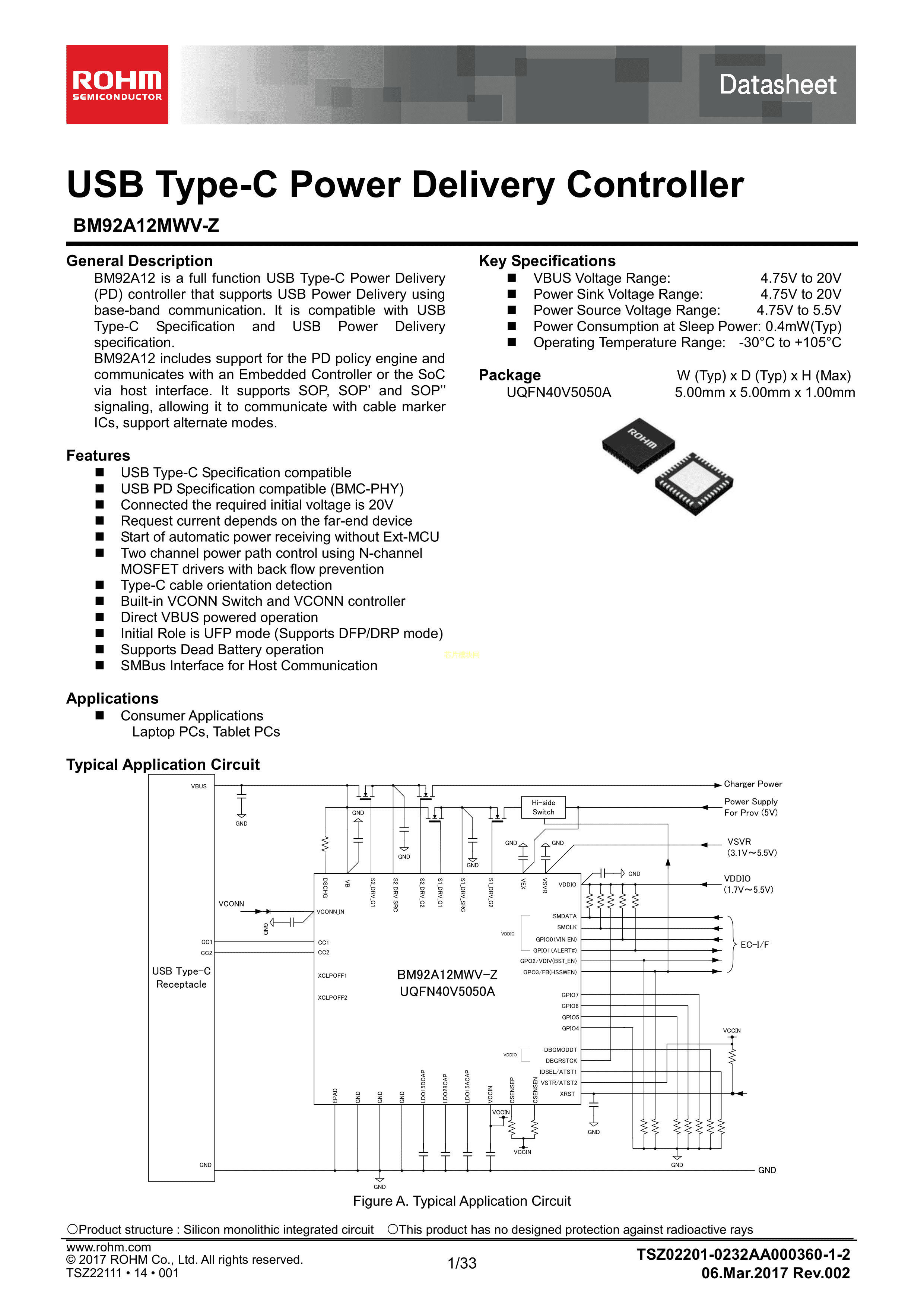 BM92A12MWV-ZE2数据手册UQFN040V5050封装ROHM(罗姆)PDF规格书,中英文