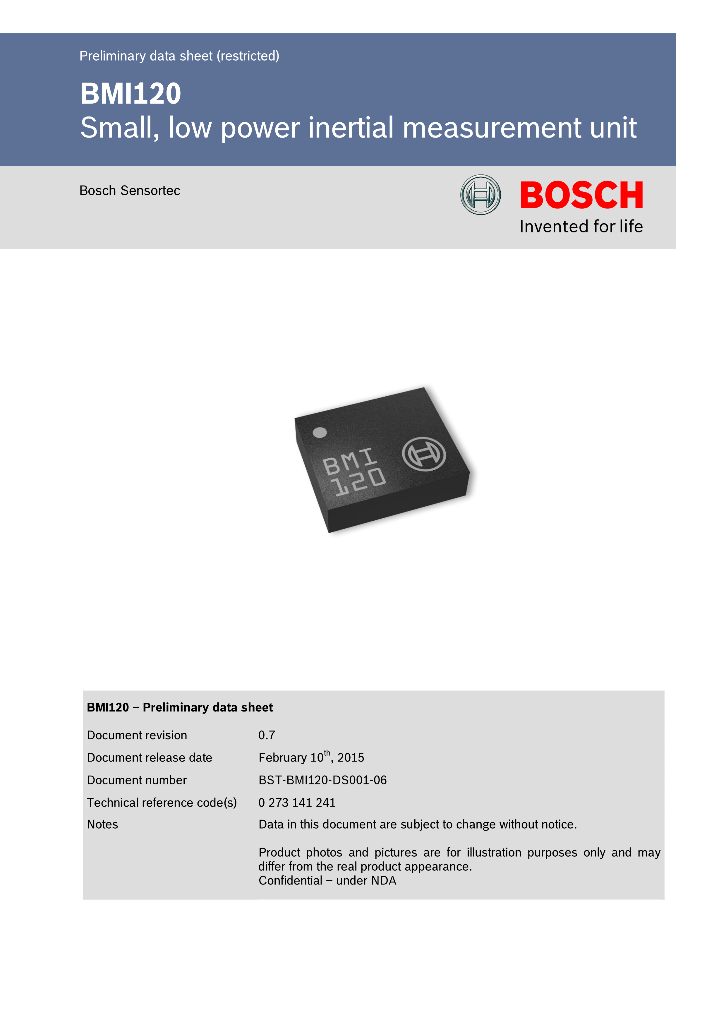 BMI120数据手册LGA-14封装Bosch(博世)PDF规格书,中英文下载