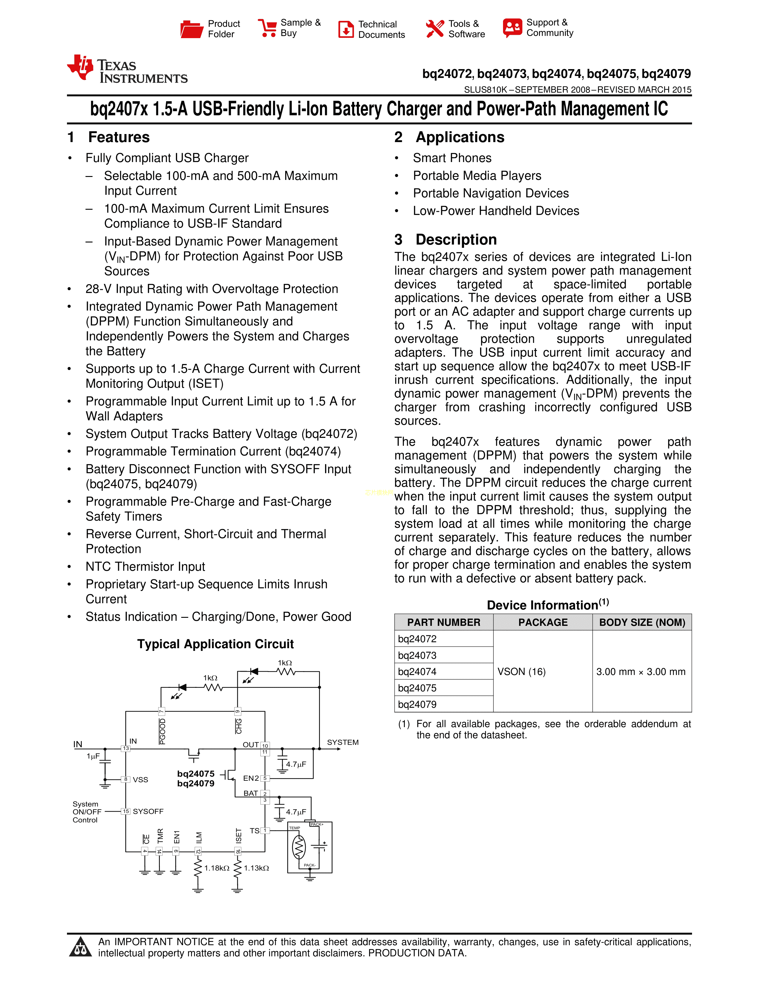 BQ24074RGTR数据手册QFN-16_3x3x05P封装TI(德州仪器)PDF规格书,中英文下