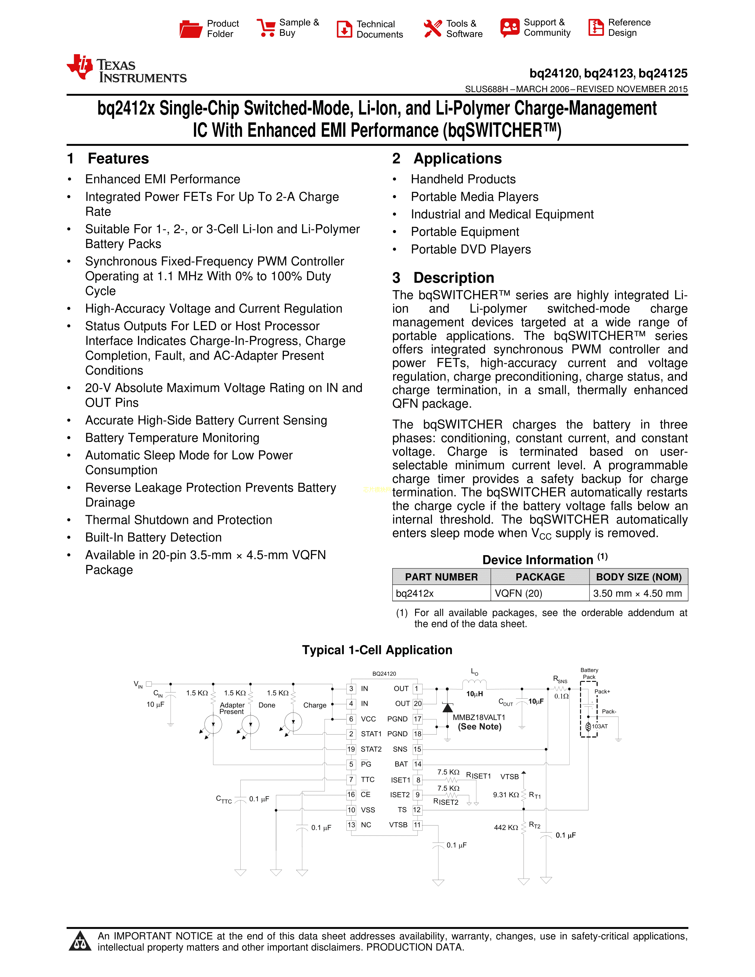 BQ24125RHLR数据手册VQFN-20封装TI(德州仪器)PDF规格书,中英文下载