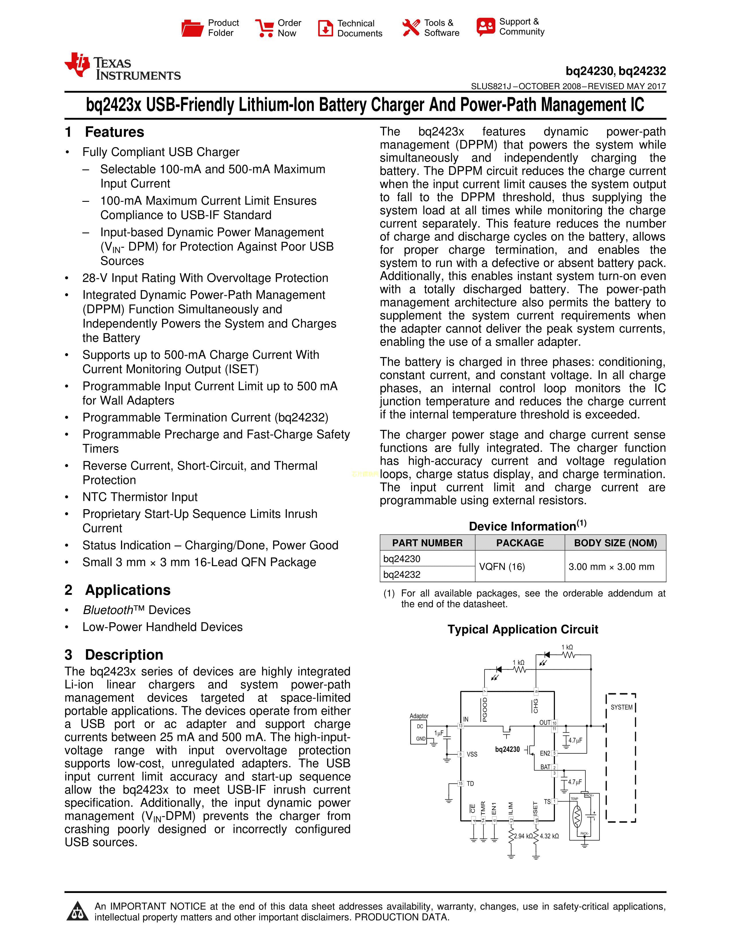 BQ24230RGTT数据手册VQFN-16封装TI(德州仪器)PDF规格书,中英文下载
