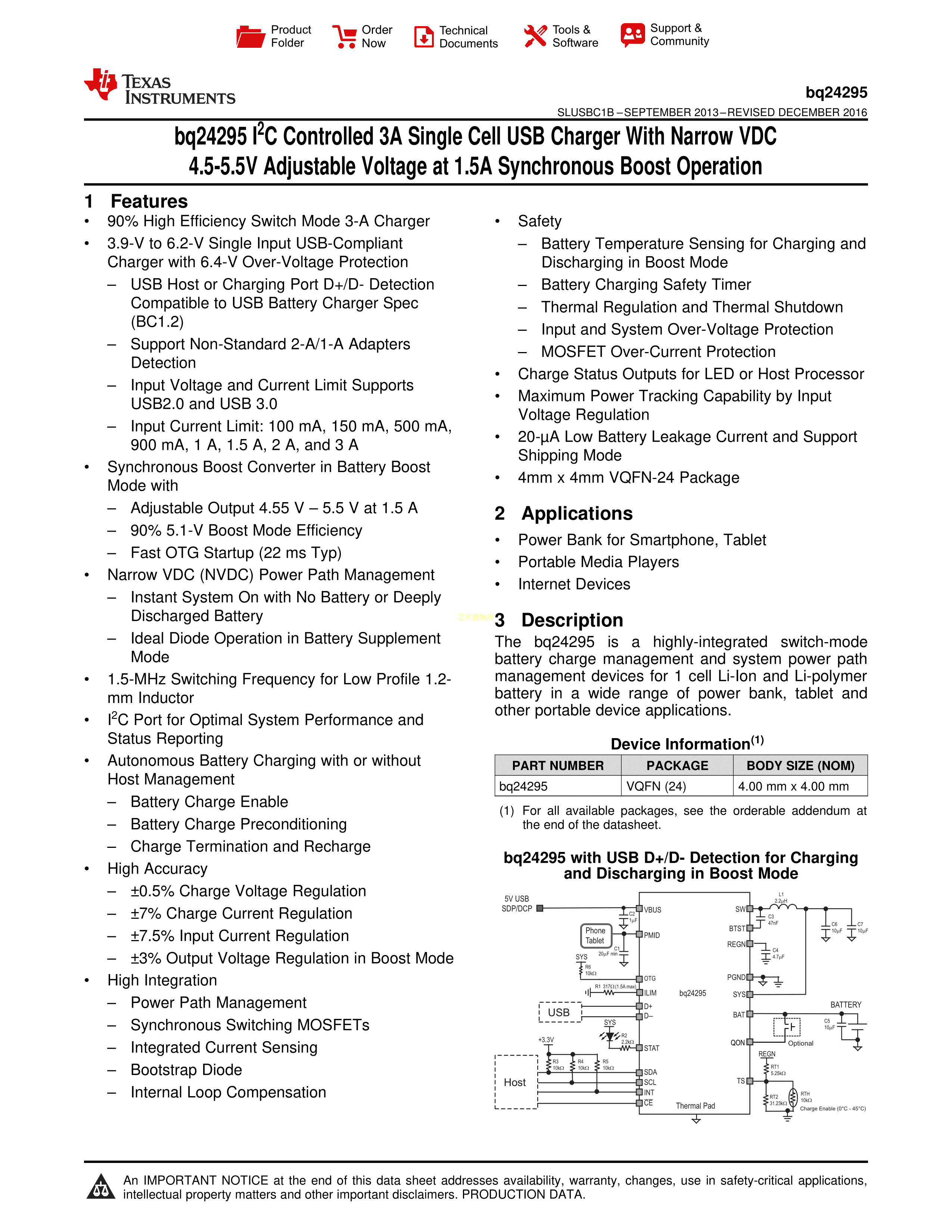 BQ24295RGER数据手册VQFN-24封装TI(德州仪器)PDF规格书,中英文下载