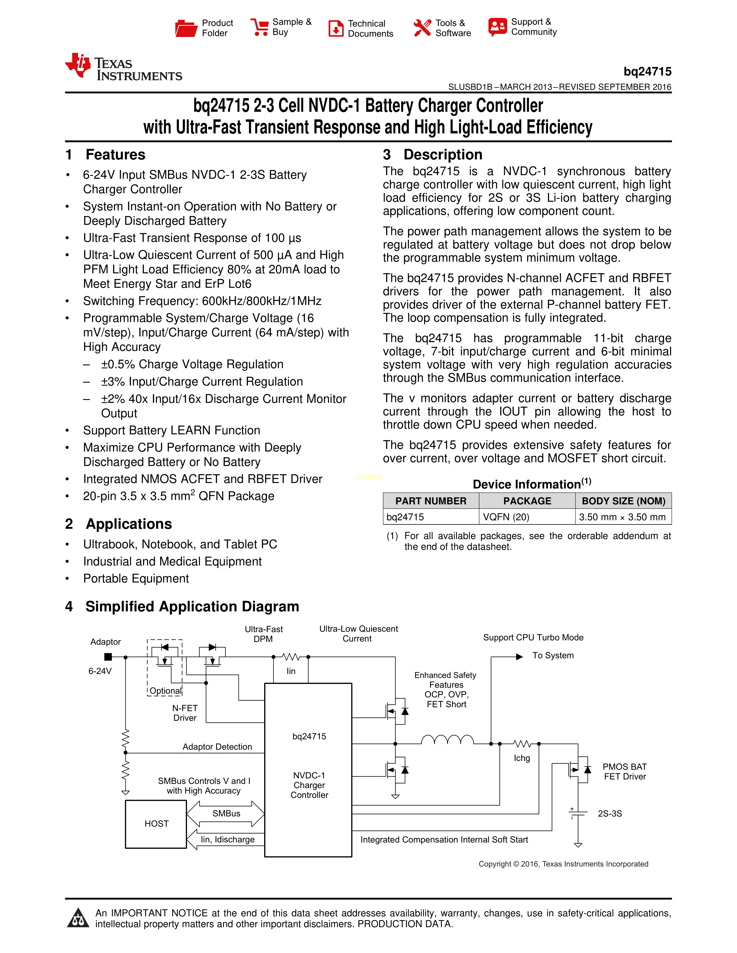 BQ24715RGRR数据手册VQFN-20封装TI(德州仪器)PDF规格书,中英文下载