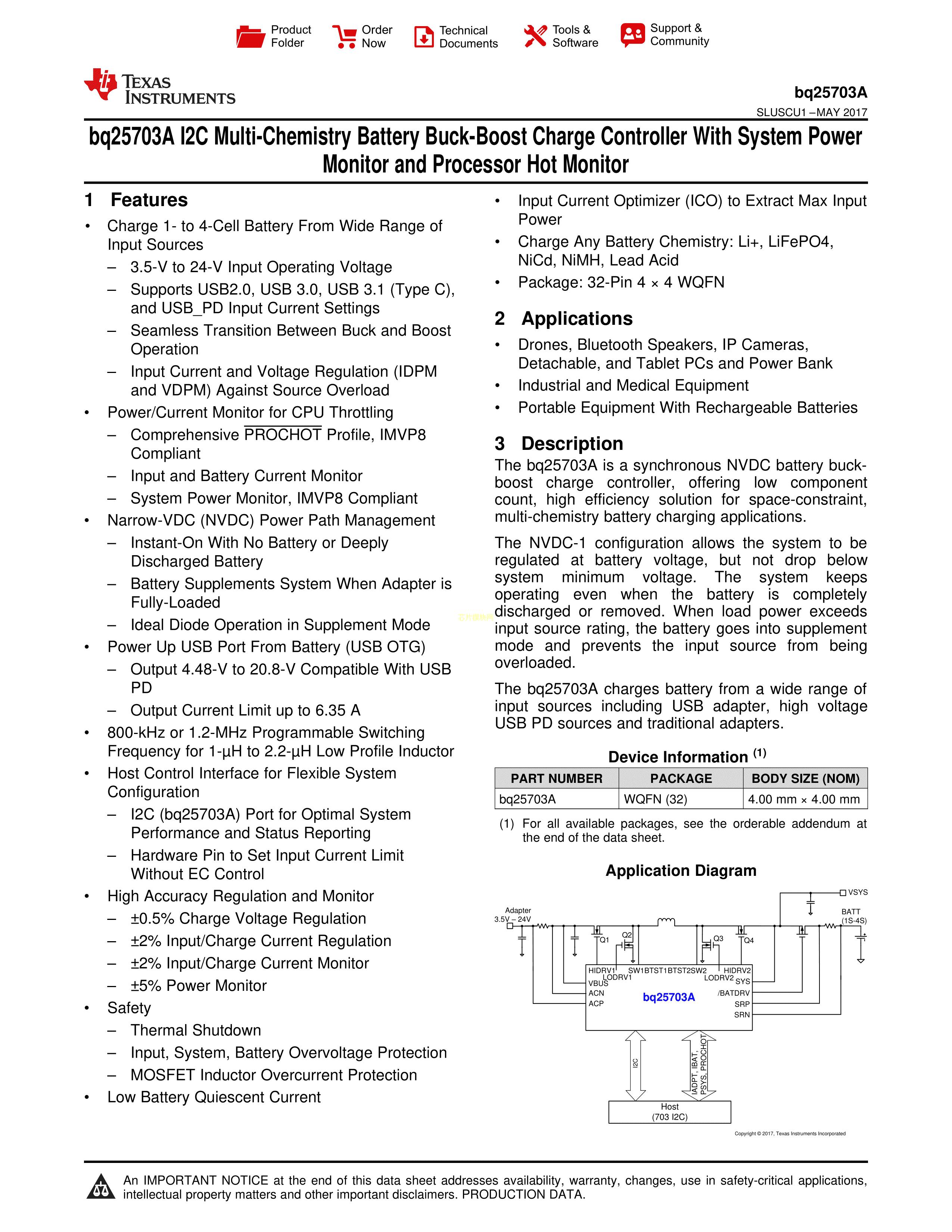 BQ25703ARSNR数据手册QFN-32封装TI(德州仪器)PDF规格书,中英文下载