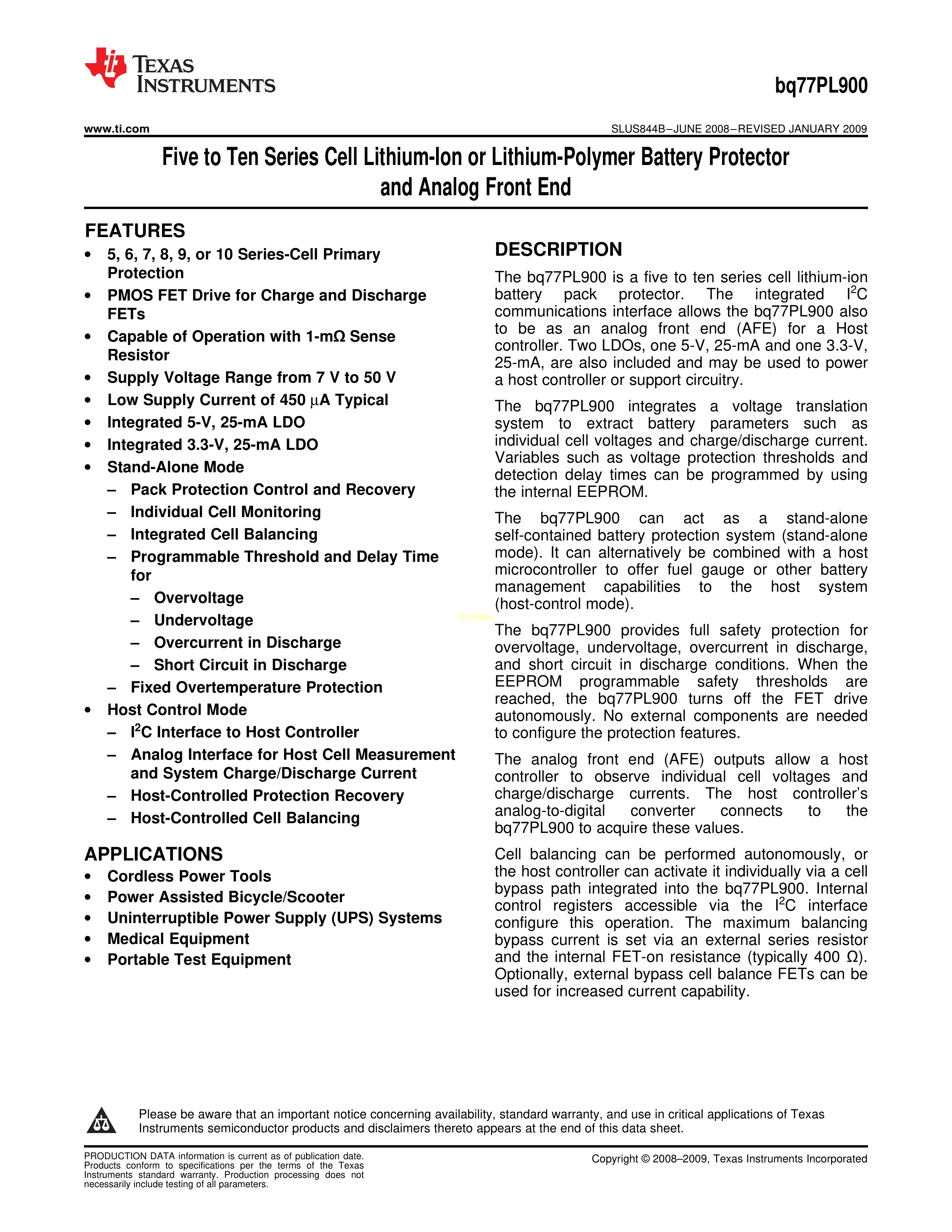 BQ77PL900DLR数据手册SSOP-48_300mil封装TI(德州仪器)PDF规格书,中英文