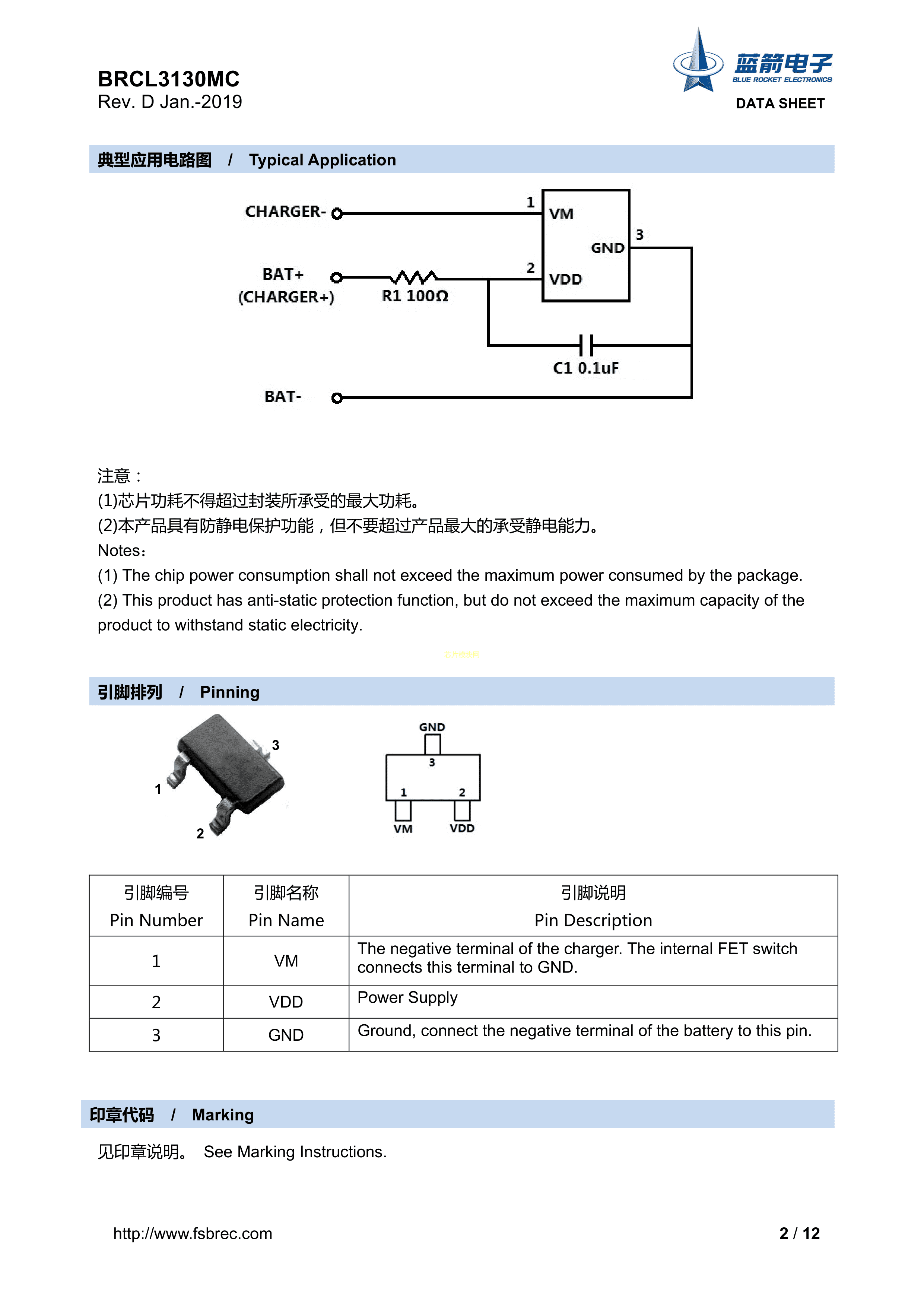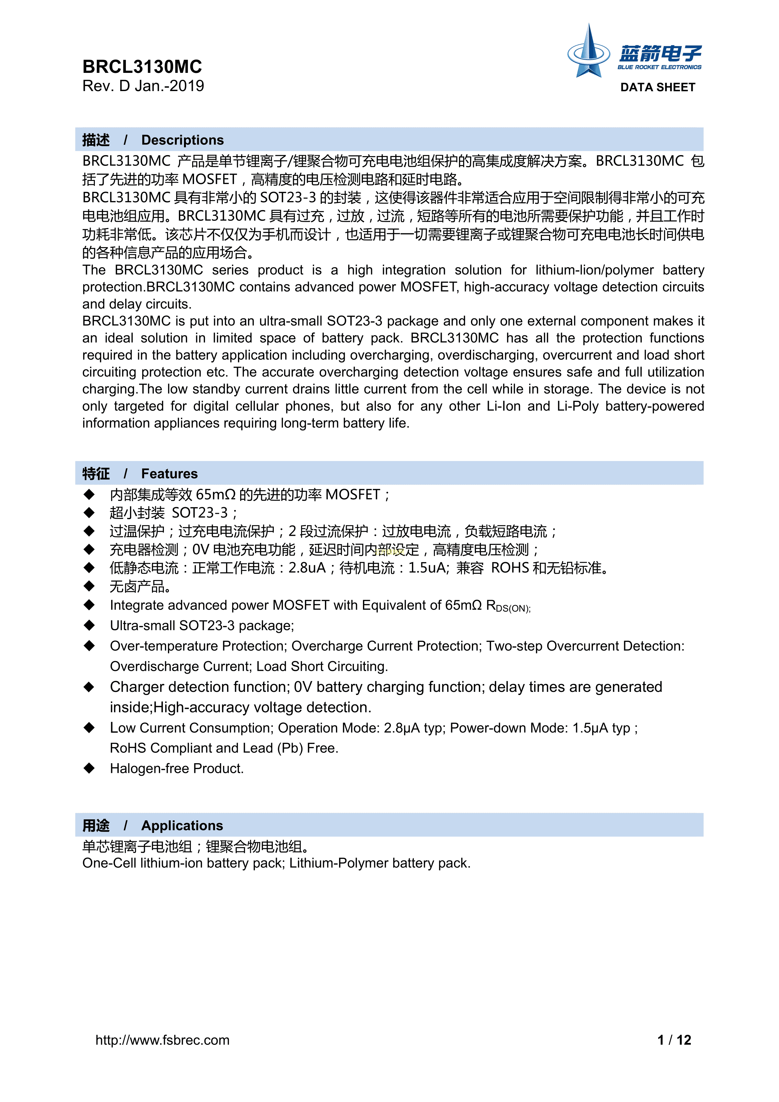 BRCL3130MC数据手册SOT-23-3封装BLUE ROCKET(蓝箭)PDF规格书,中英文下