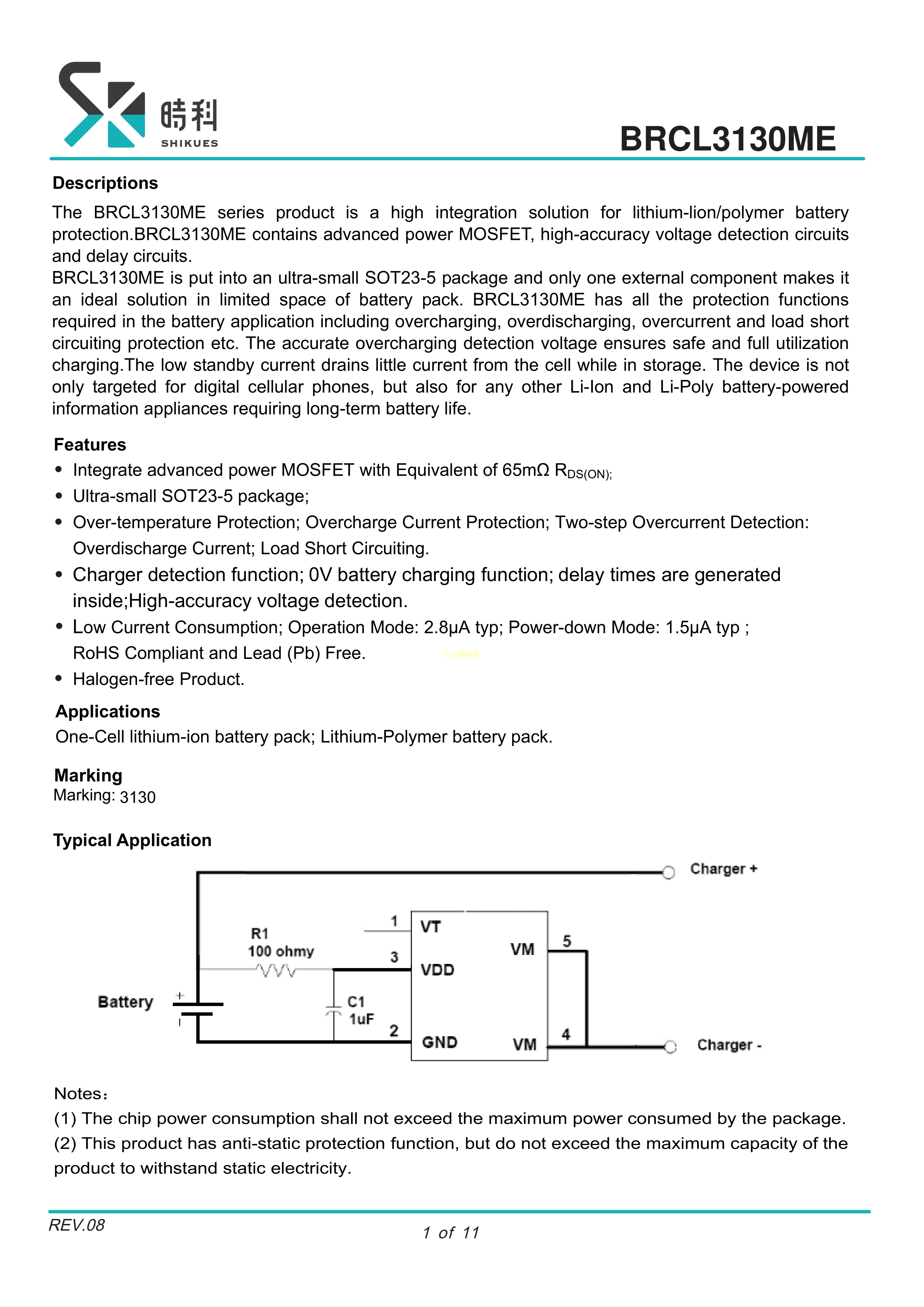 BRCL3130ME数据手册SOT-23-5封装SHIKUES(时科)PDF规格书,中英文下载