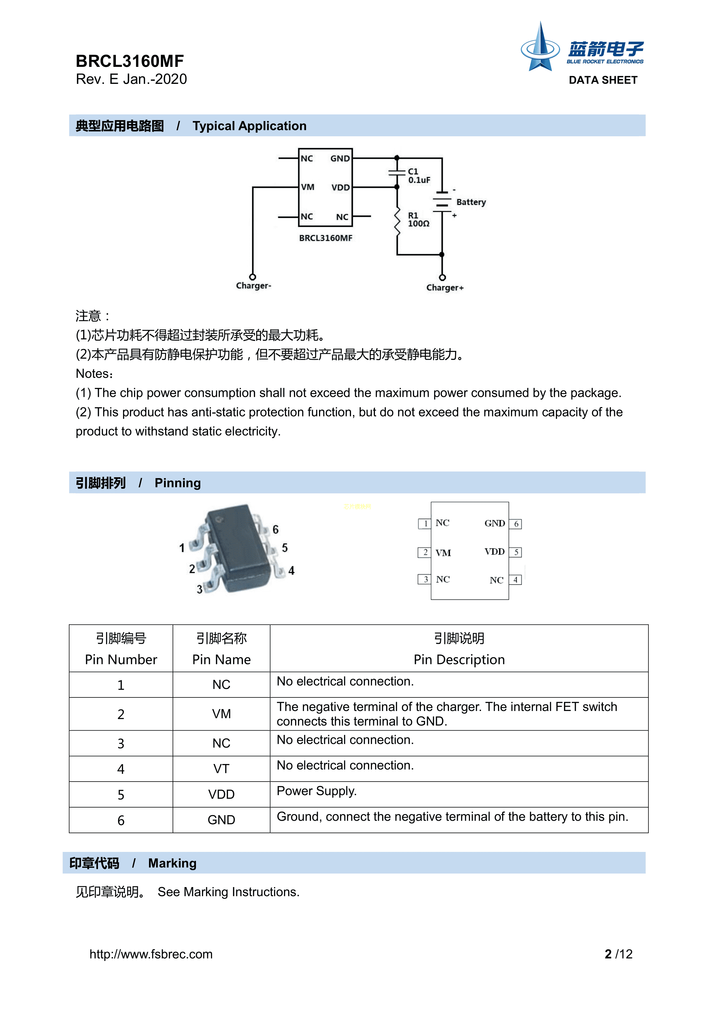 BRCL3160MF数据手册SOT-23-6封装BLUE ROCKET(蓝箭)PDF规格书,中英文下