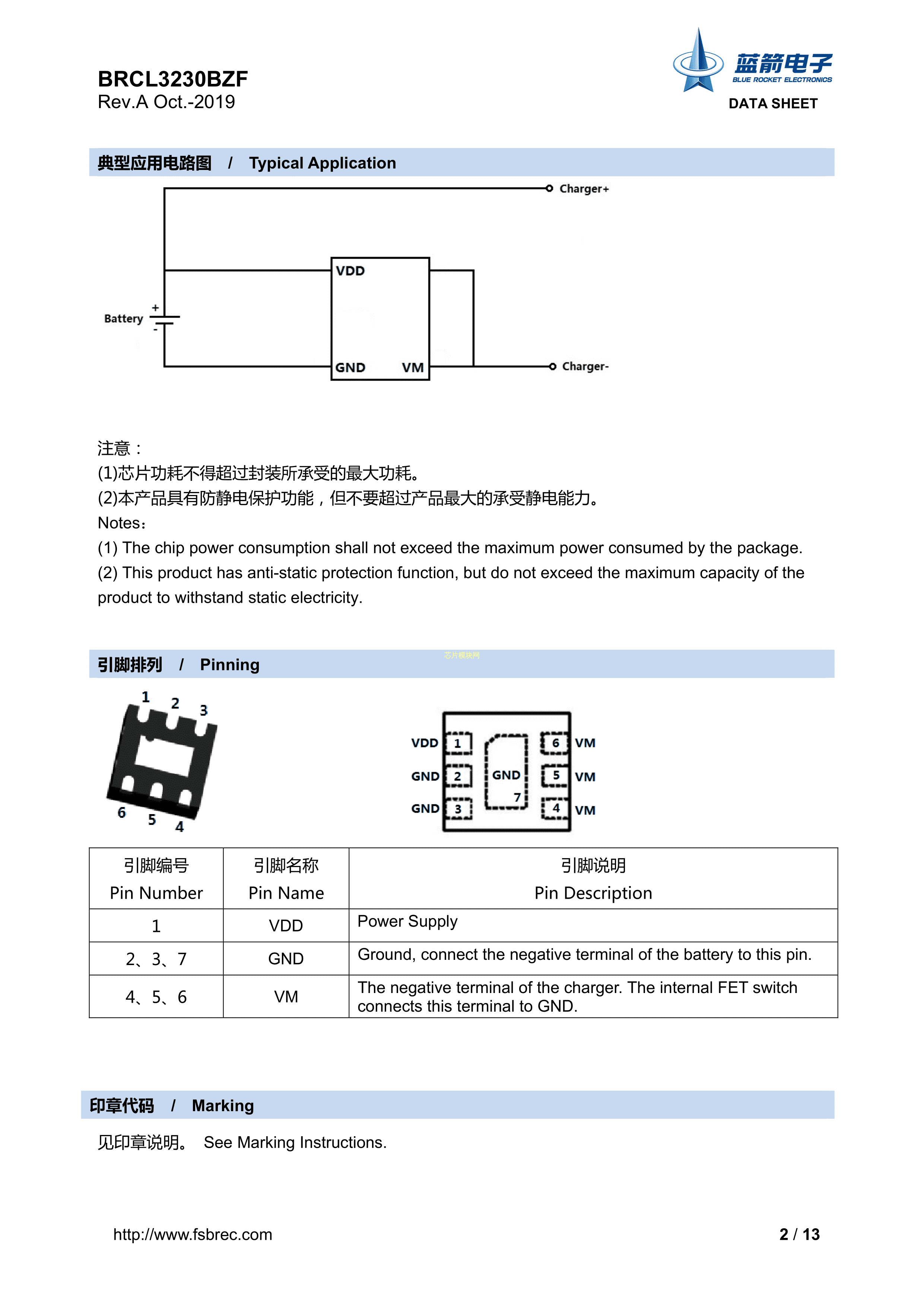 BRCL3230BZF数据手册DFN2x2-6L封装BLUE ROCKET(蓝箭)PDF规格书,中英