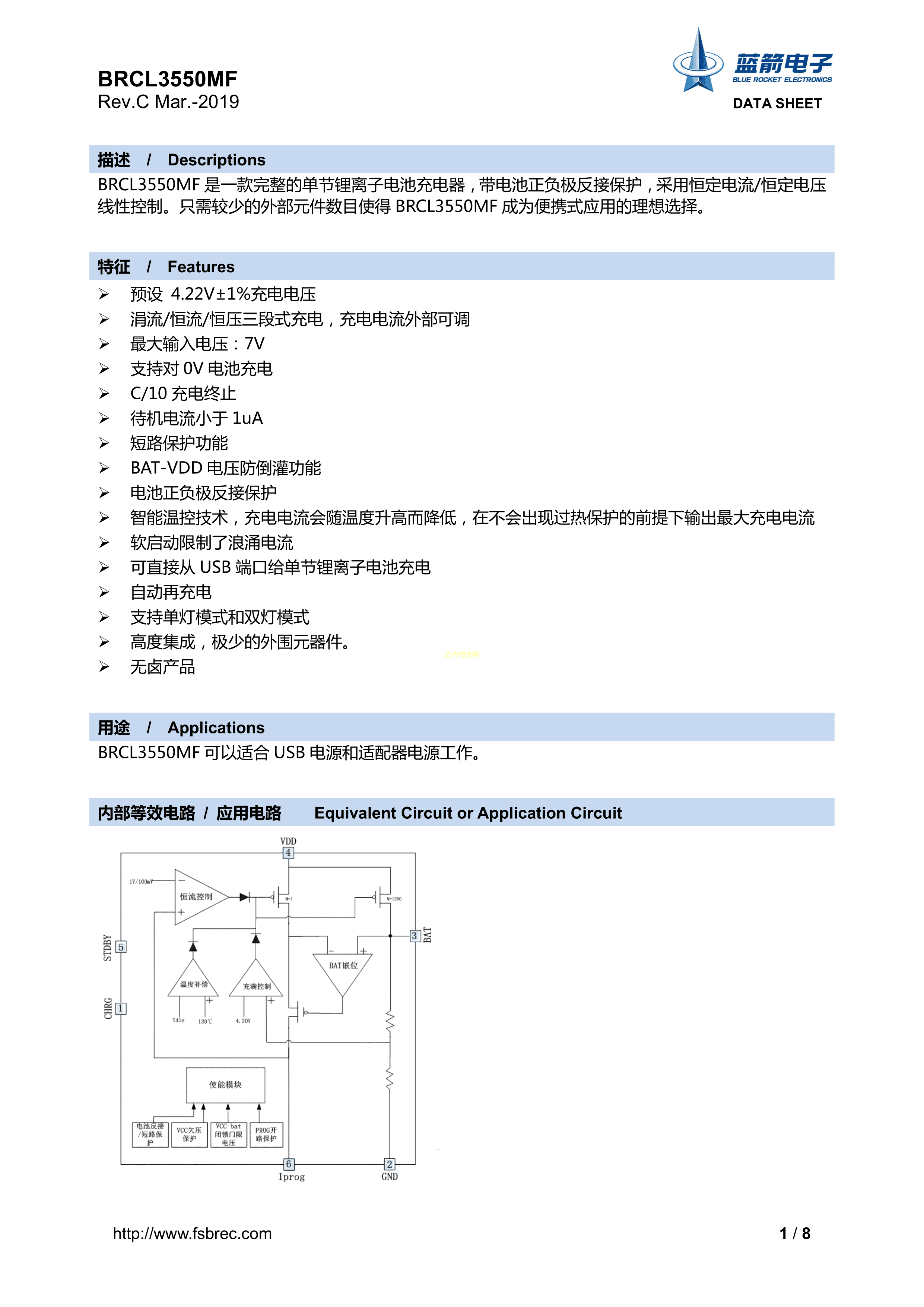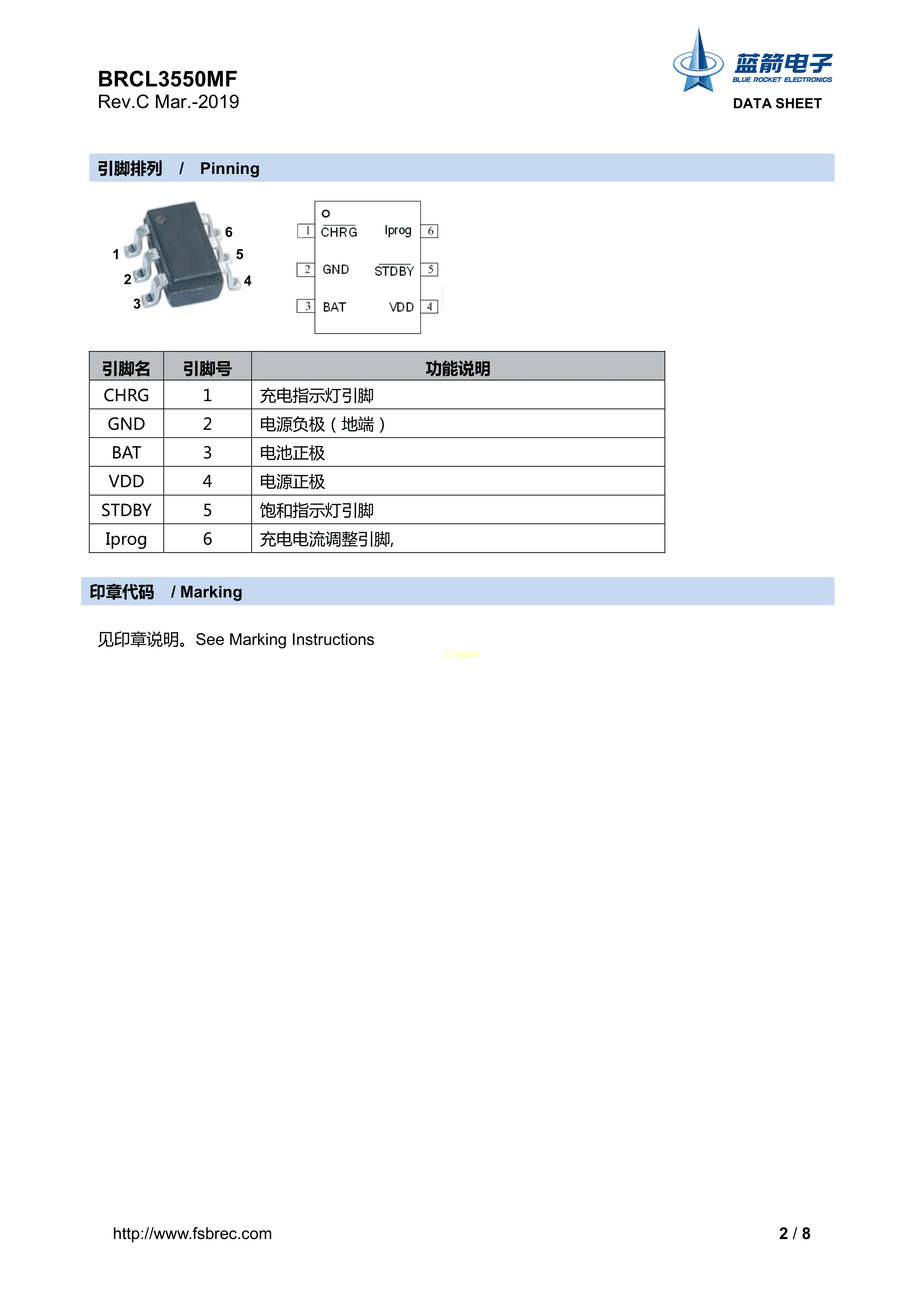 BRCL3550MF数据手册SOT-23-6封装BLUE ROCKET(蓝箭)PDF规格书,中英文下