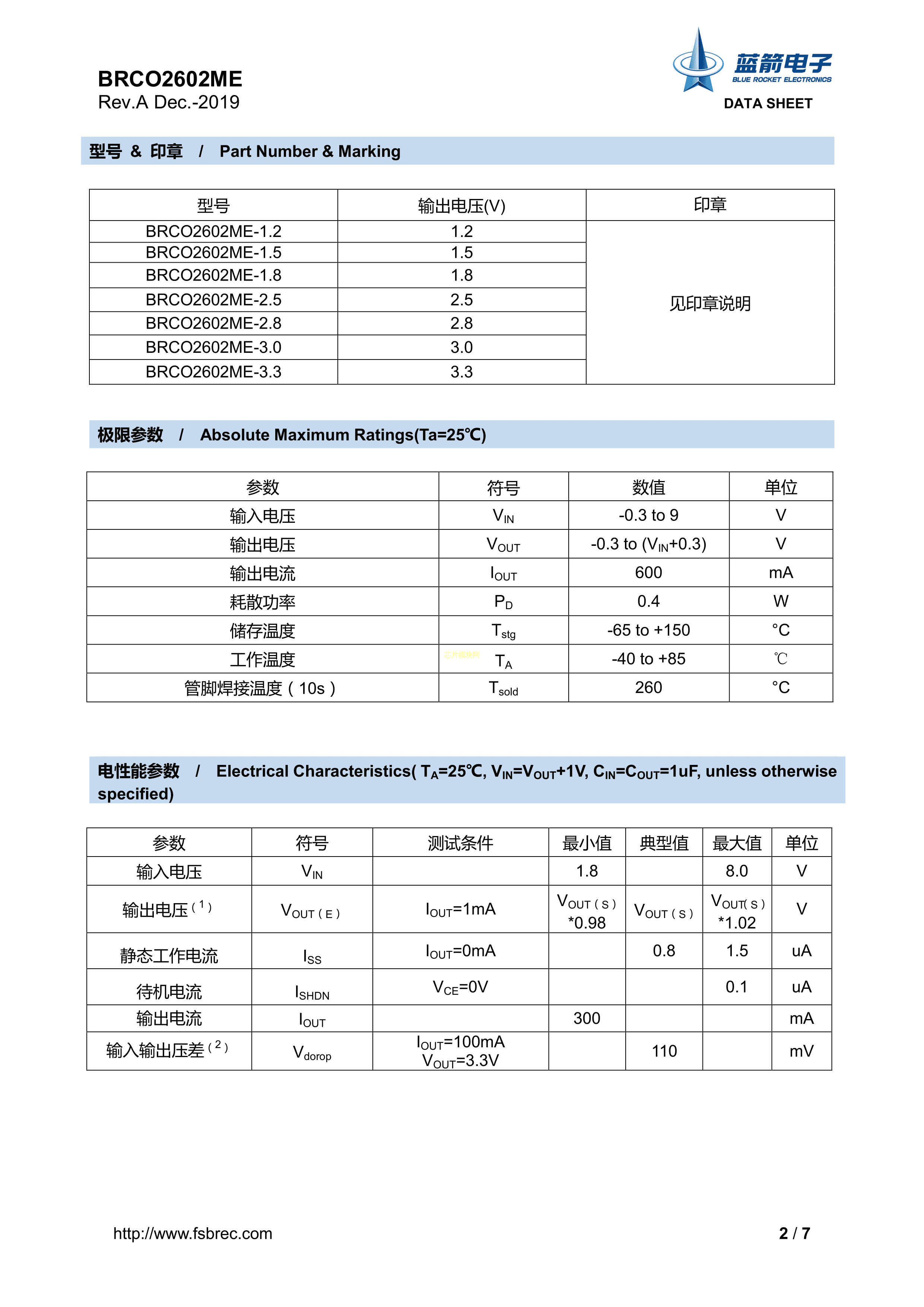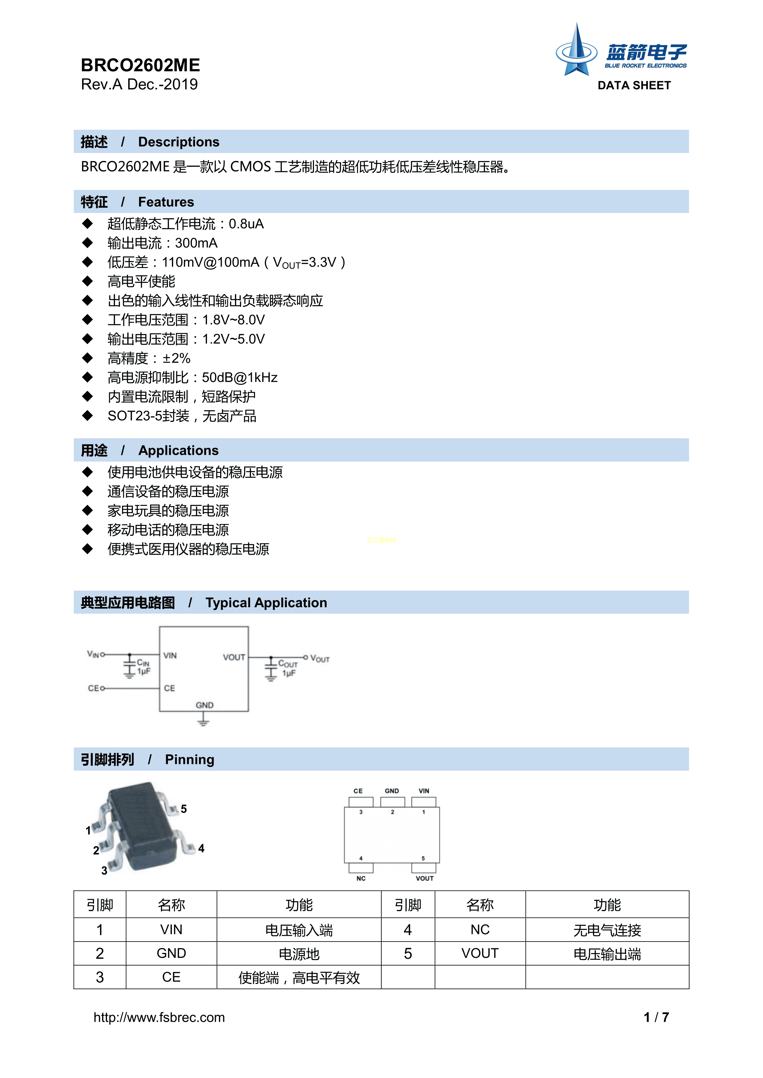 BRCO2602ME-3.3数据手册SOT-23-5封装BLUE ROCKET(蓝箭)PDF规格书,