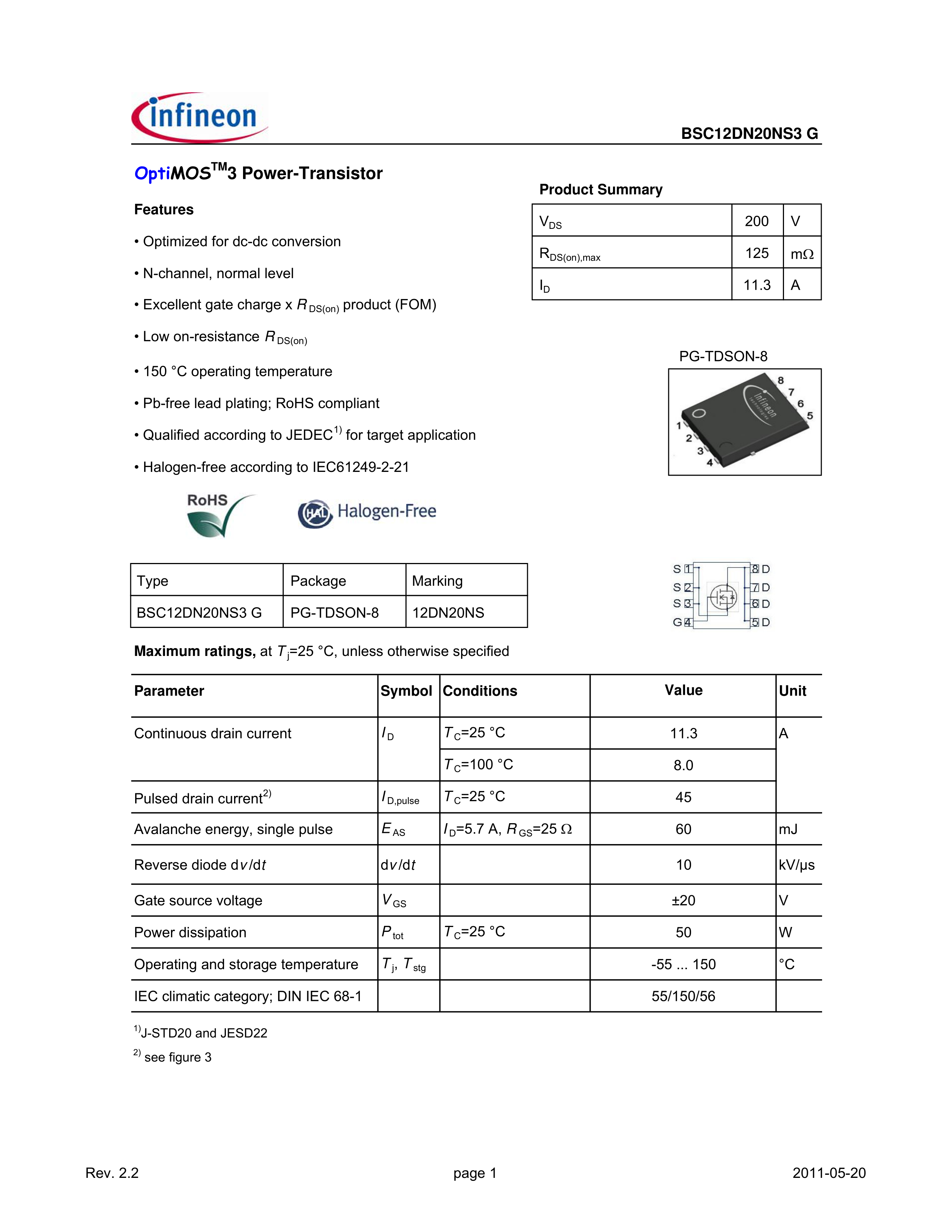 BSC12DN20NS3 G数据手册PG-TDSON-8封装Infineon(英飞凌)PDF规格书,