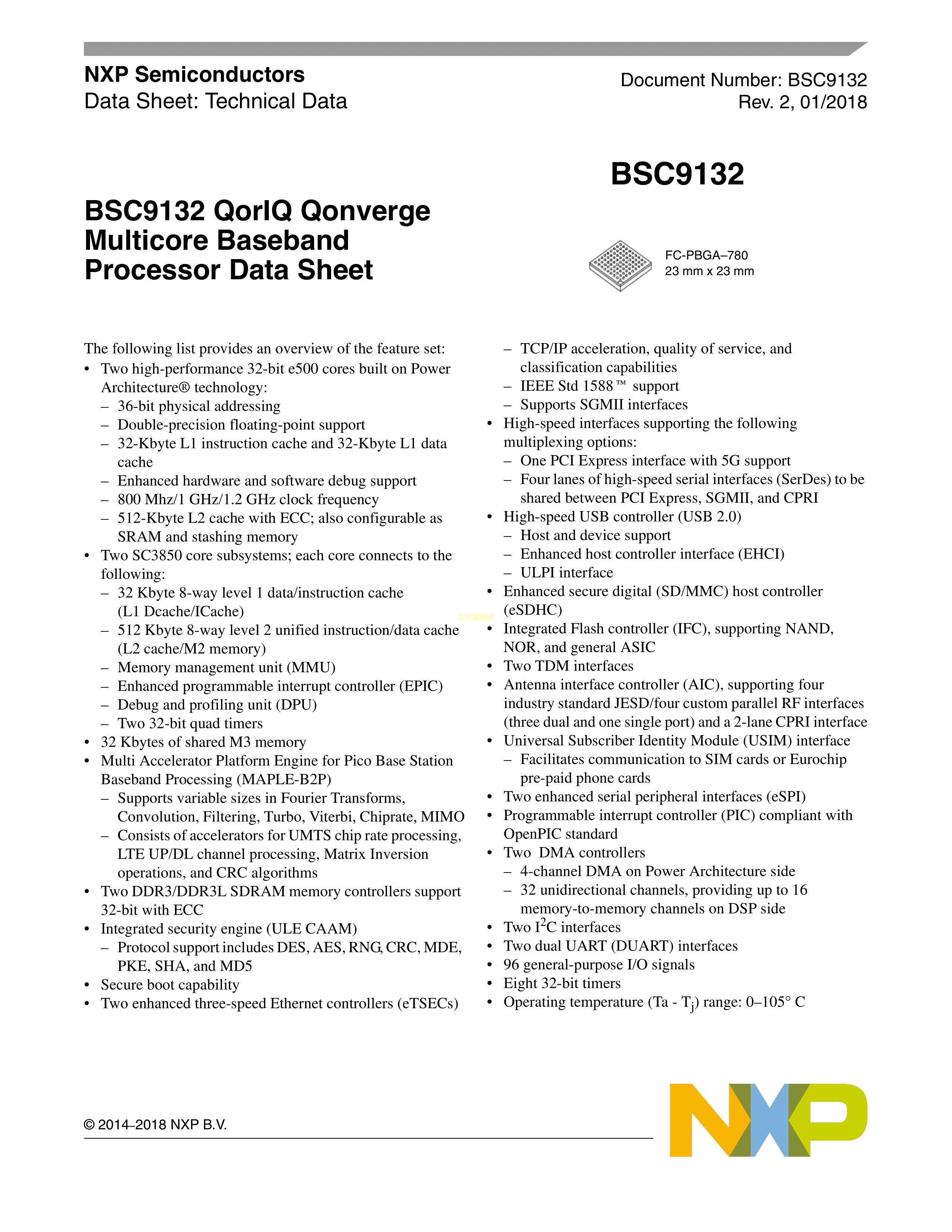 BSC9132NSN7KNKB数据手册FCBGA-780(23x23)封装NXP(恩智浦)PDF规格