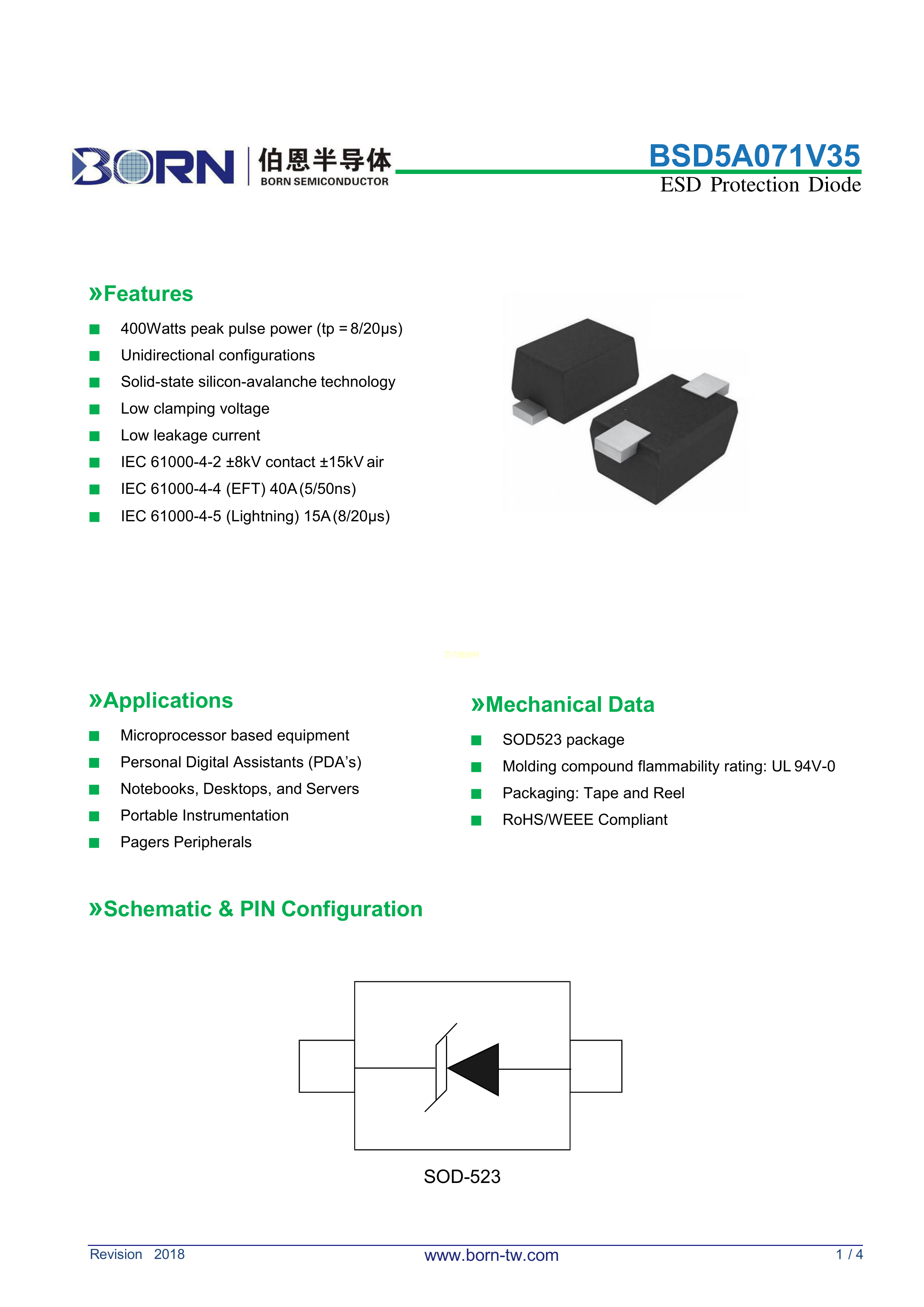 BSD5A071V35数据手册SOD-523封装BORN(伯恩半导体)PDF规格书,中英文下载