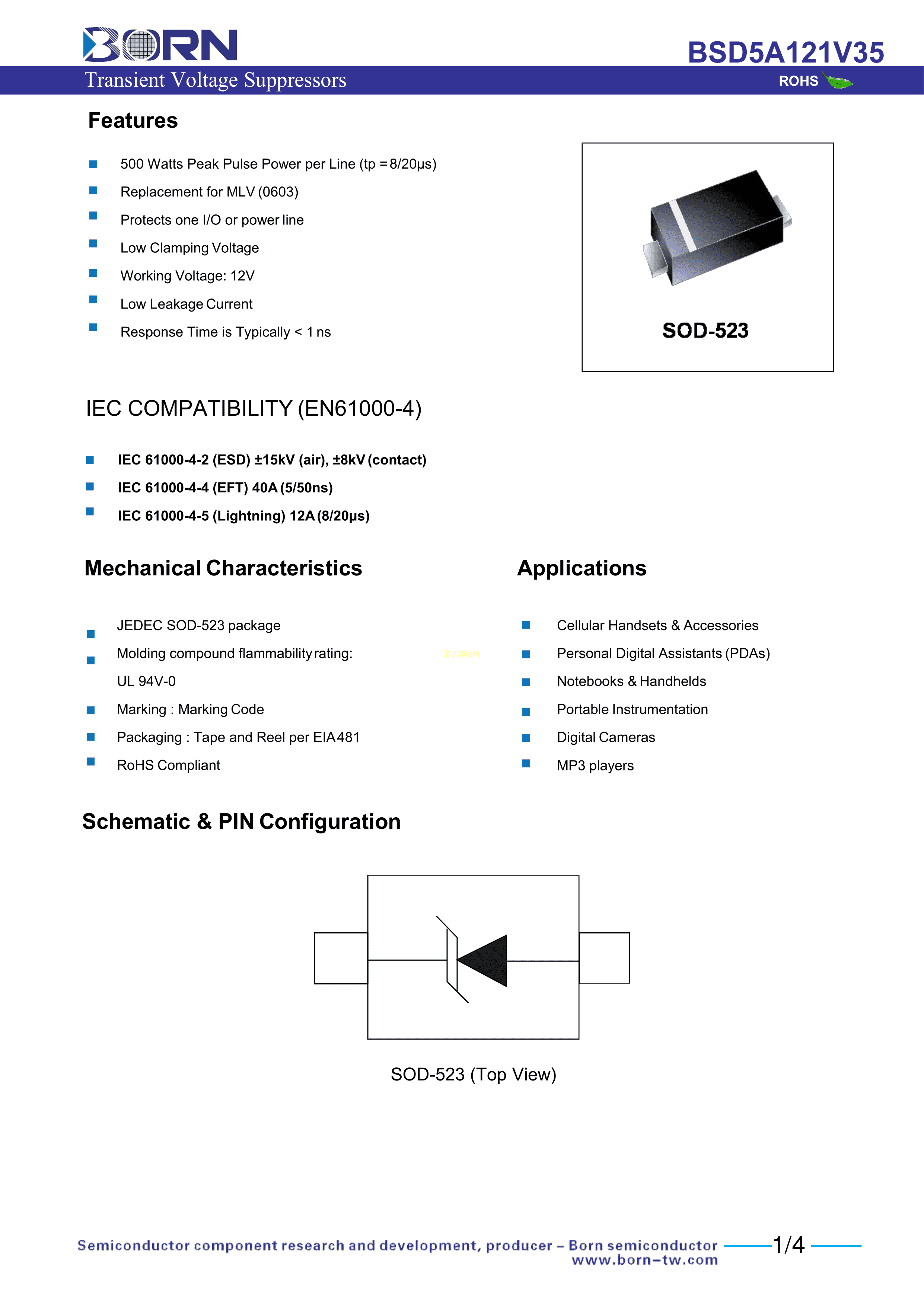 BSD5A121V35数据手册SOD-523封装BORN(伯恩半导体)PDF规格书,中英文下载