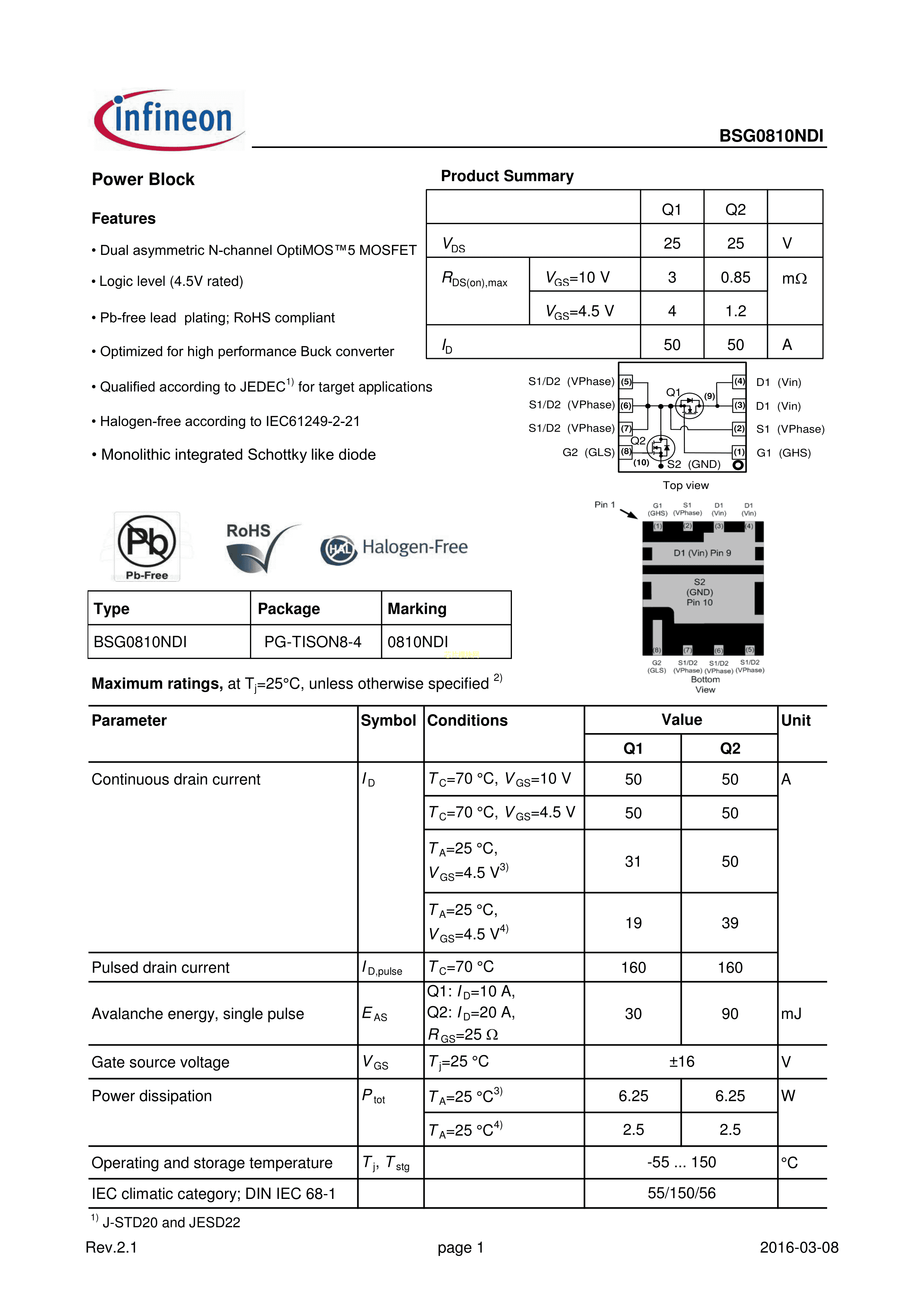 BSG0810NDI数据手册PG-TISON-8封装Infineon(英飞凌)PDF规格书,中英文下