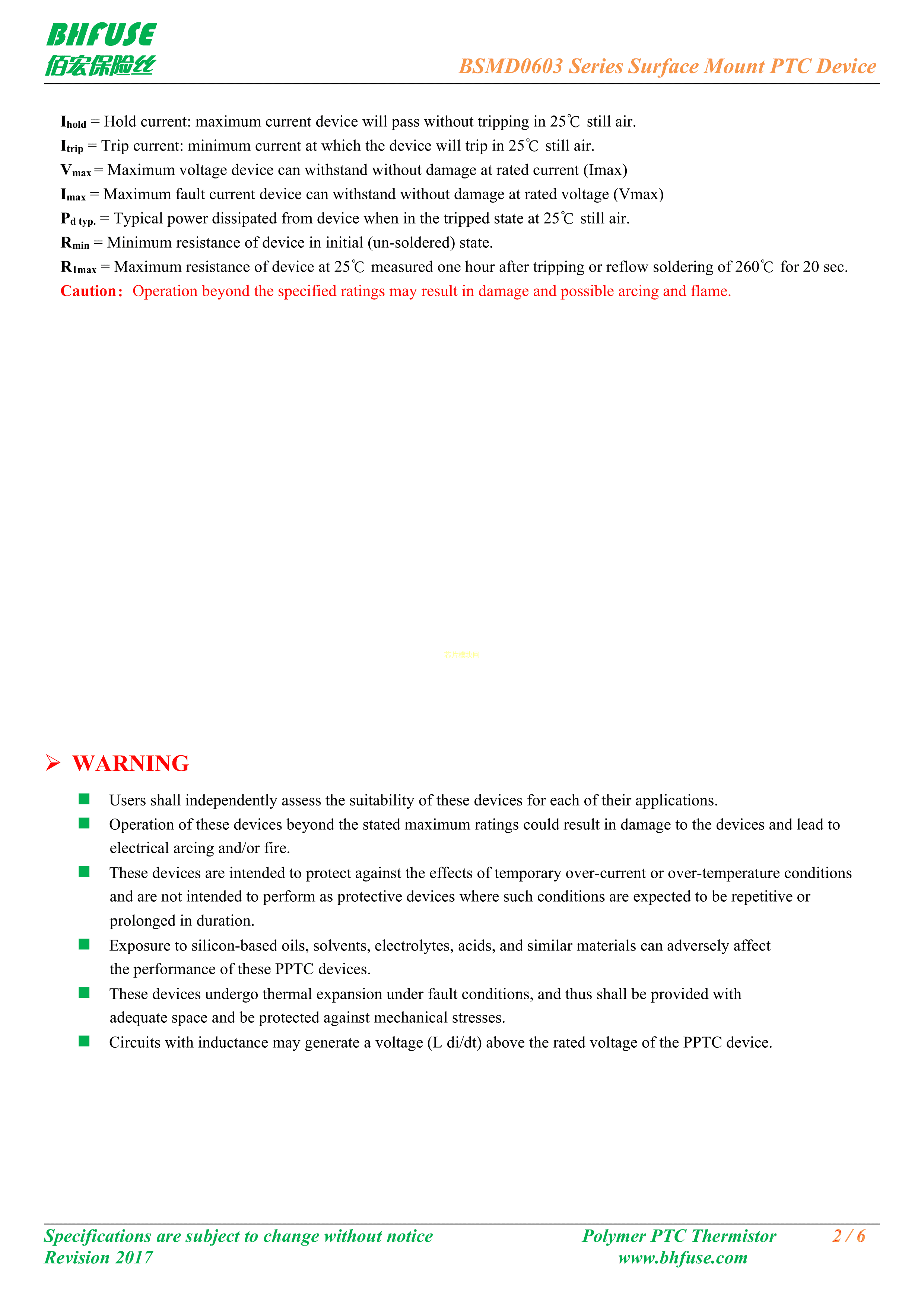 BSMD0603-050-6V数据手册0603封装BHFUSE(佰宏)PDF规格书,中英文下载