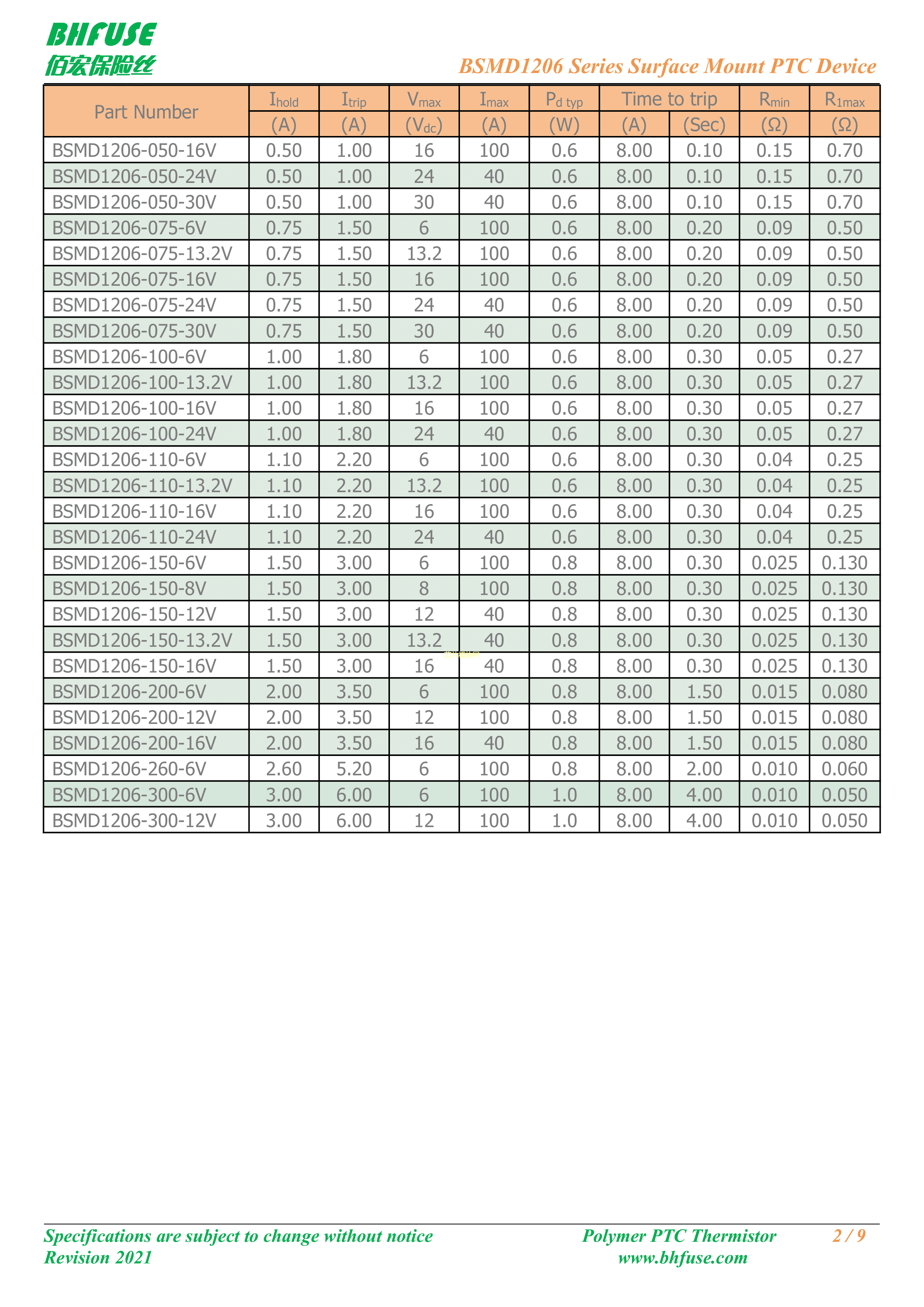 BSMD1206-075-16V数据手册1206封装BHFUSE(佰宏)PDF规格书,中英文下载