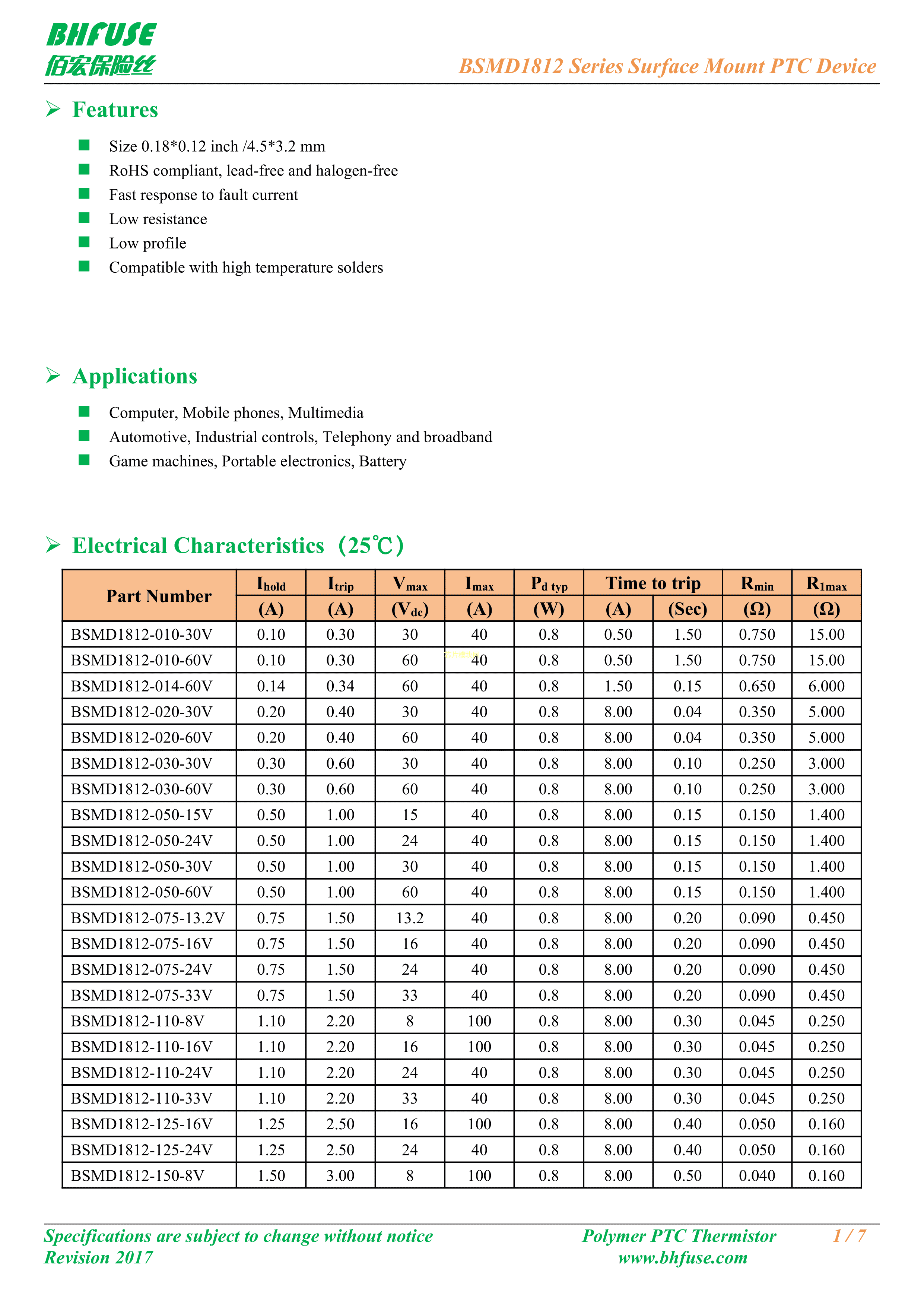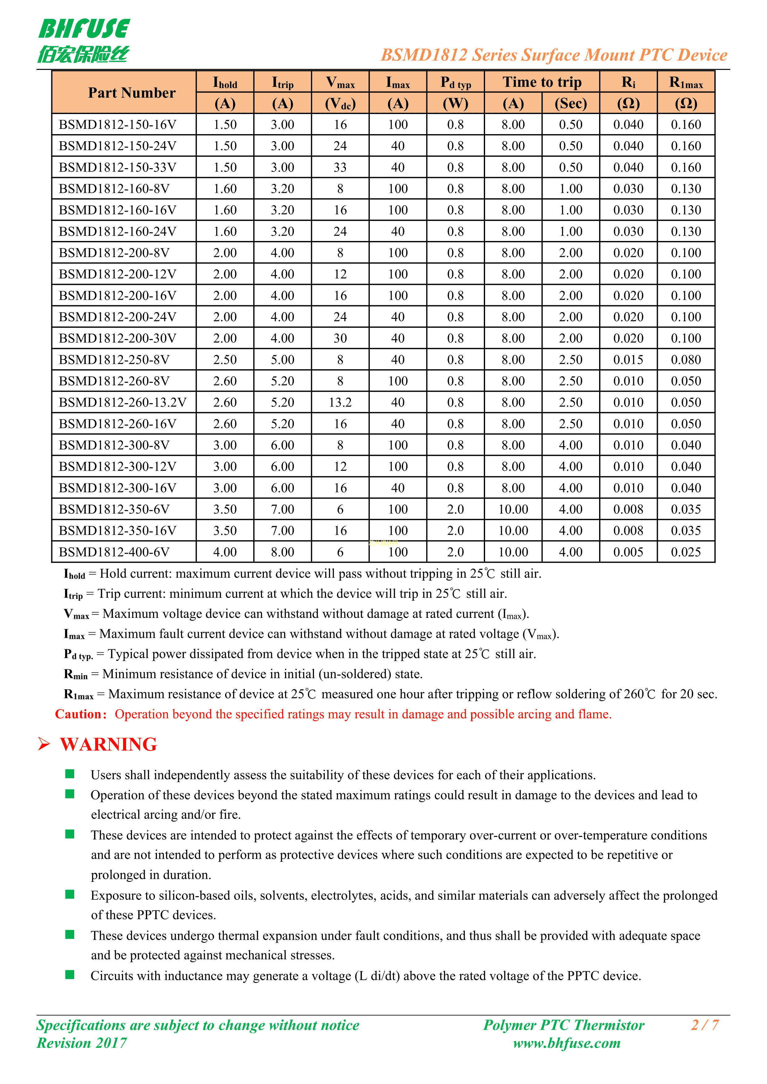 BSMD1812-200-30V数据手册1812封装BHFUSE(佰宏)PDF规格书,中英文下载