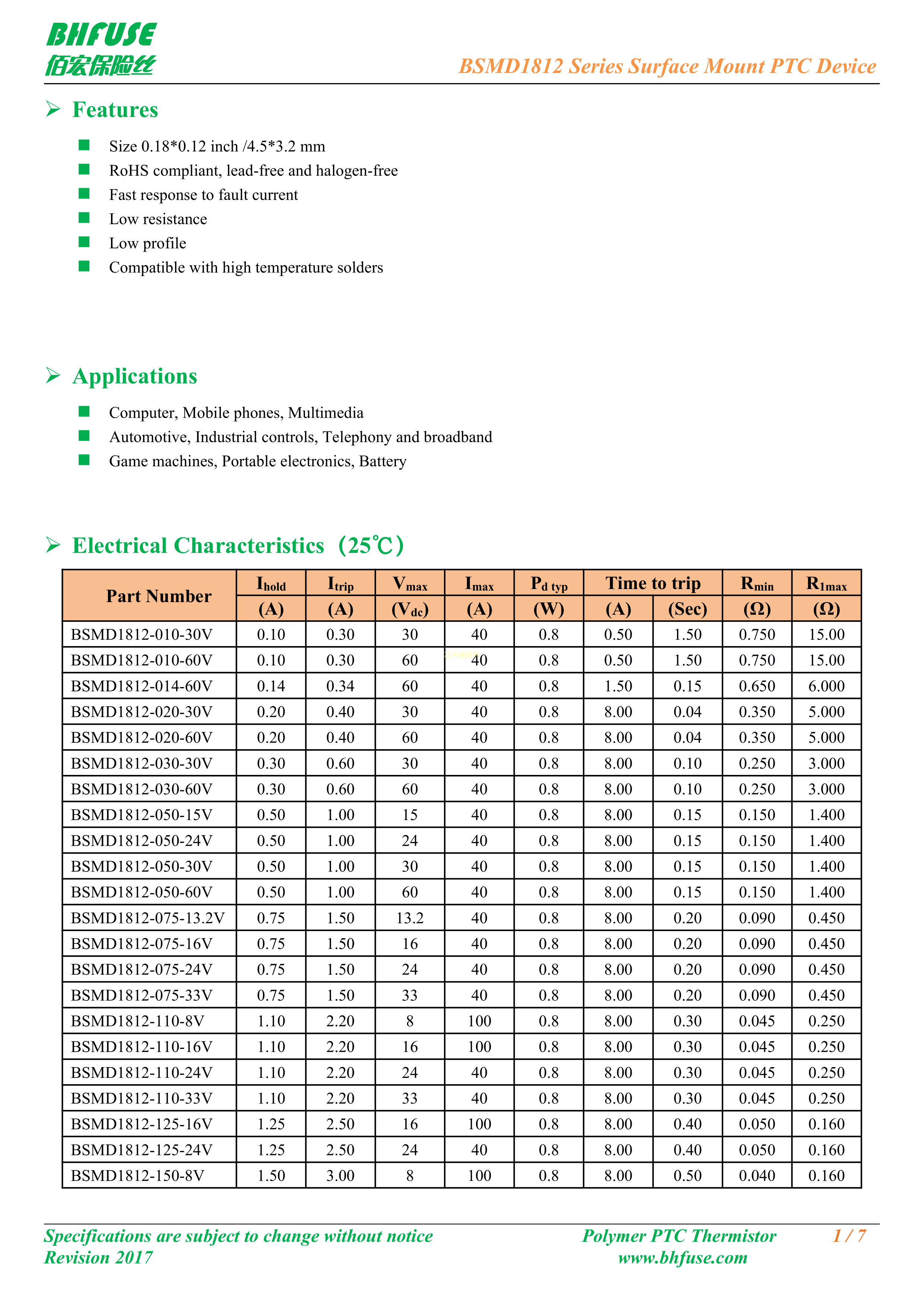 BSMD1812-200-8V数据手册1812封装BHFUSE(佰宏)PDF规格书,中英文下载