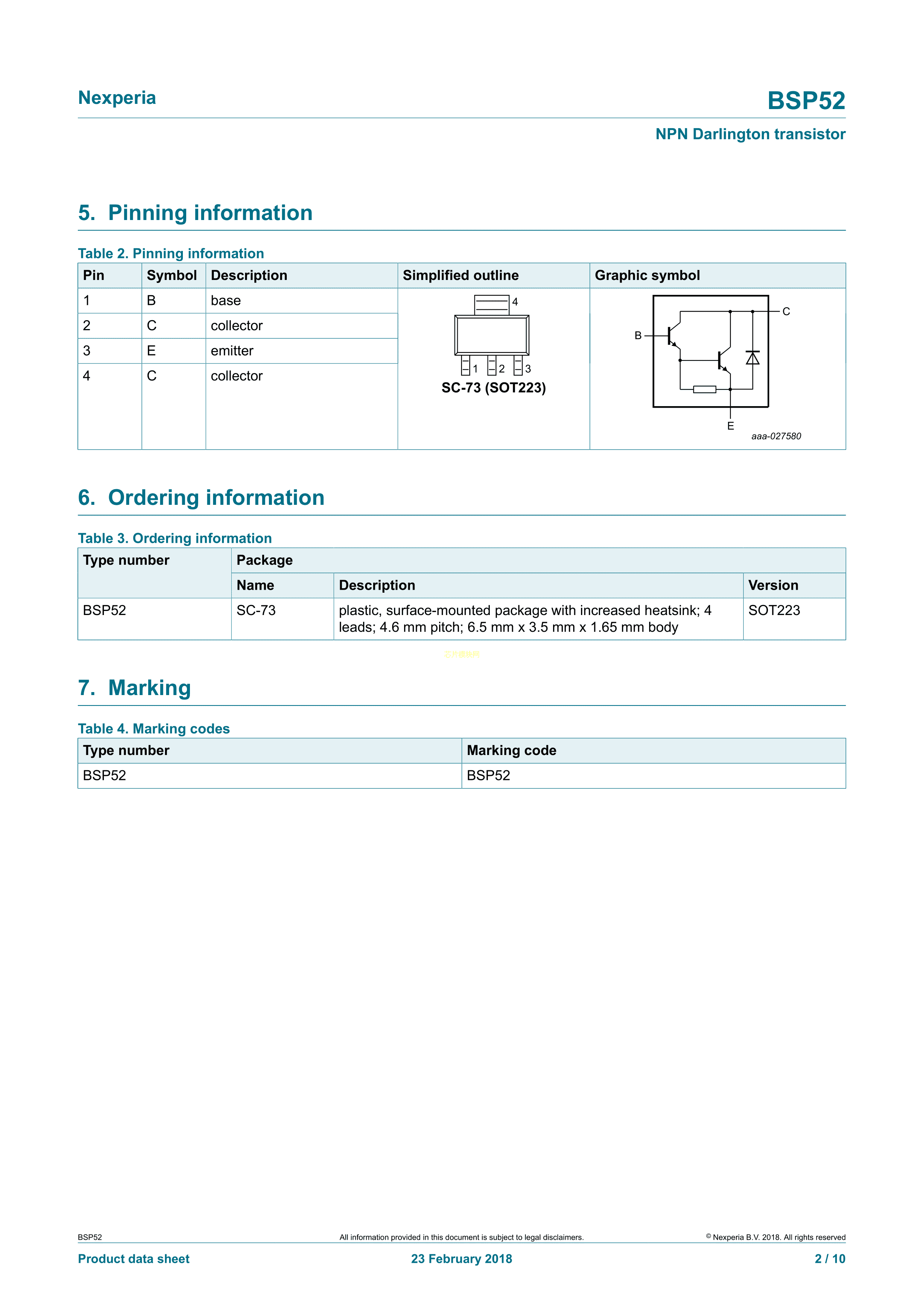 BSP52115数据手册SC-73(SOT-223)封装Nexperia(安世)PDF规格书,中英文
