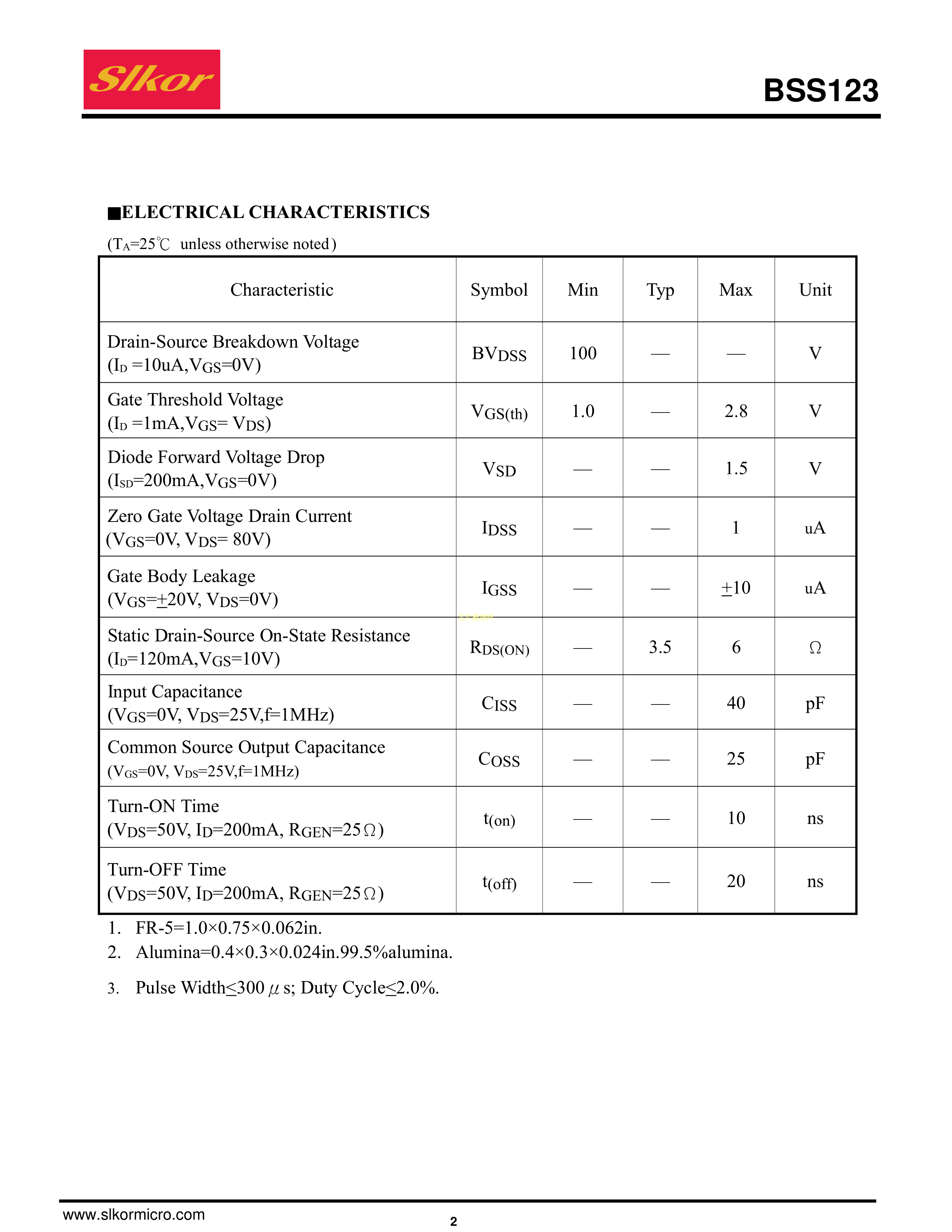 BSS123数据手册SOT-23(SOT-23-3)封装Slkor(萨科微)PDF规格书,中英文下载