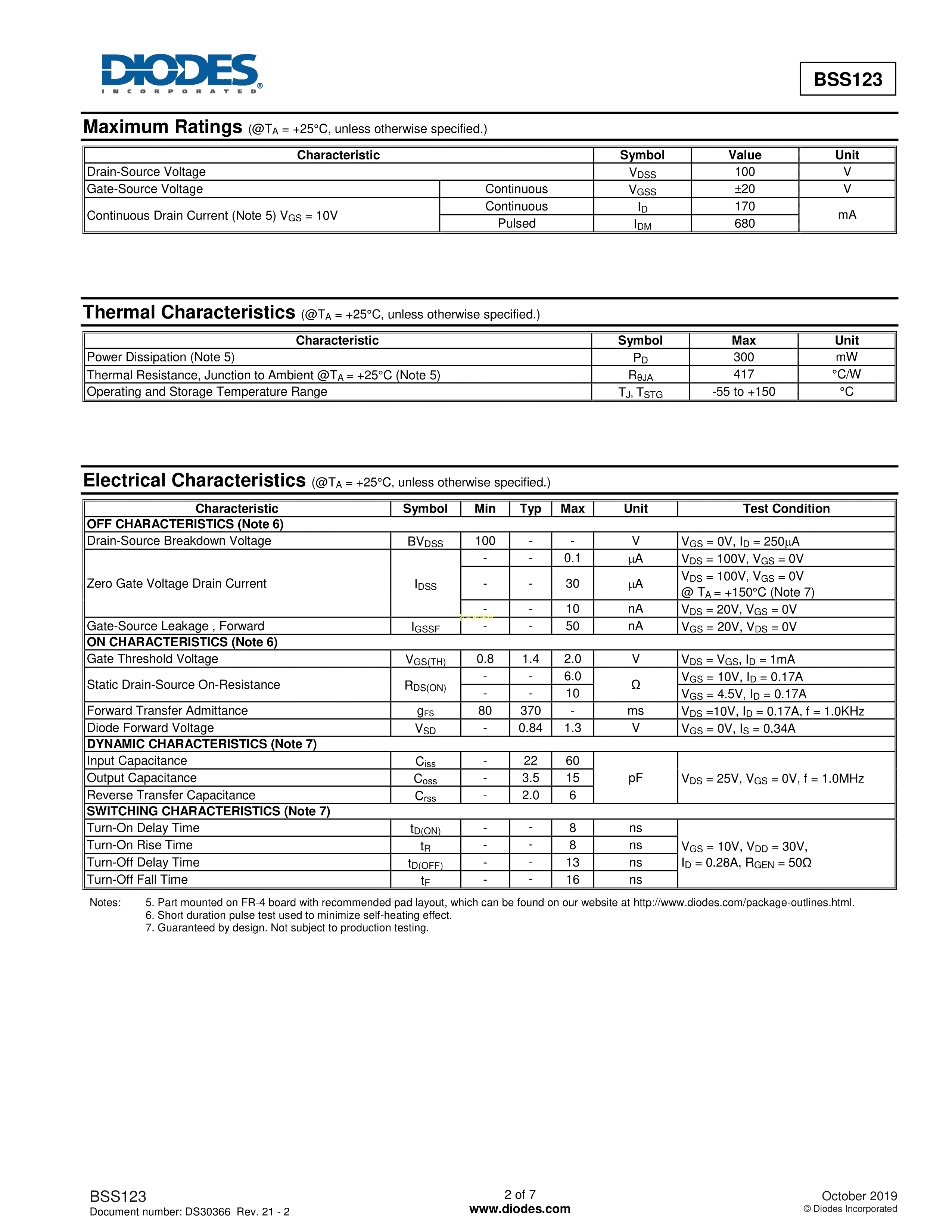 BSS123Q-7数据手册SOT-23封装DIODES(美台)PDF规格书,中英文下载