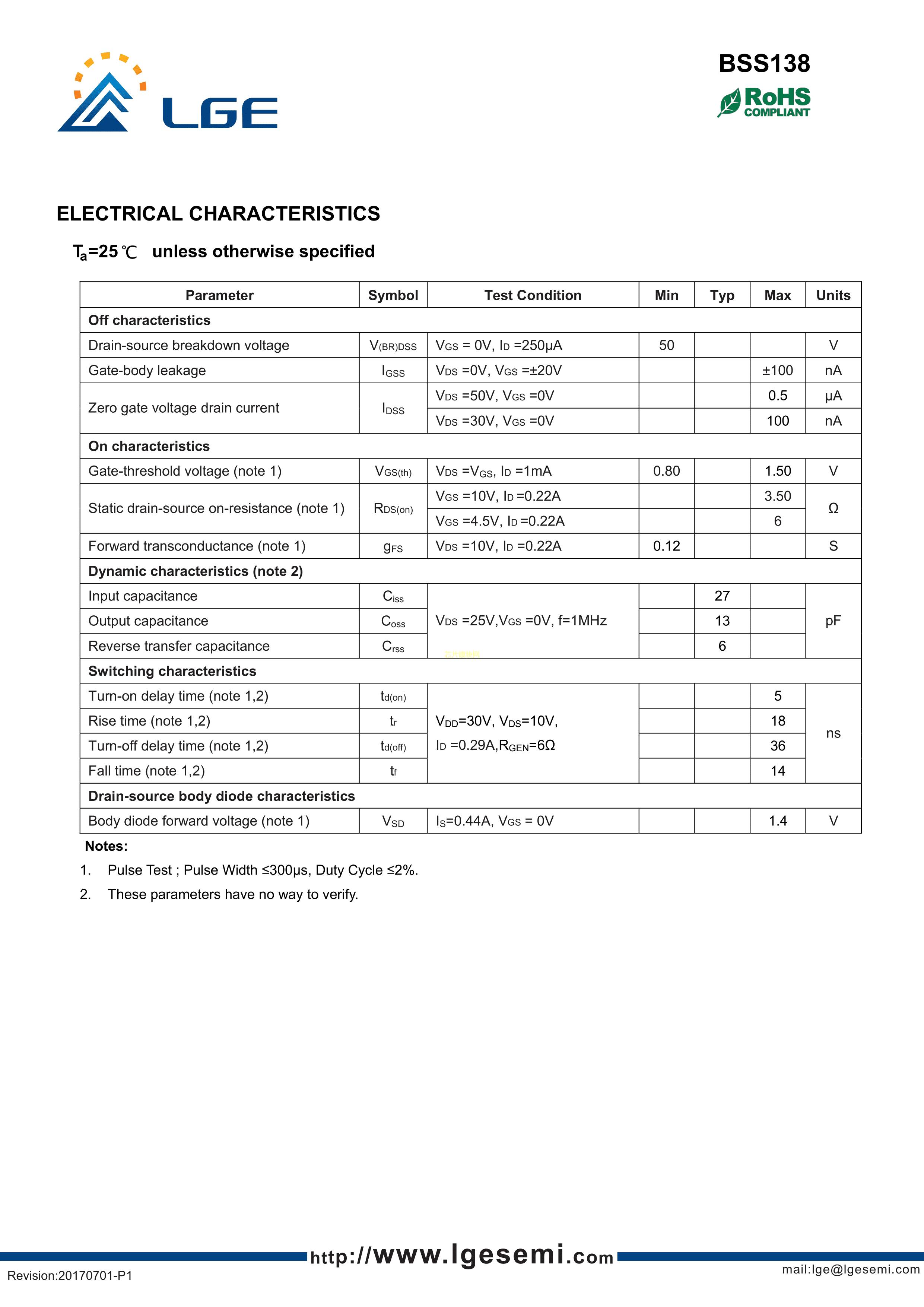 BSS138数据手册SOT-23封装LGE(鲁光)PDF规格书,中英文下载