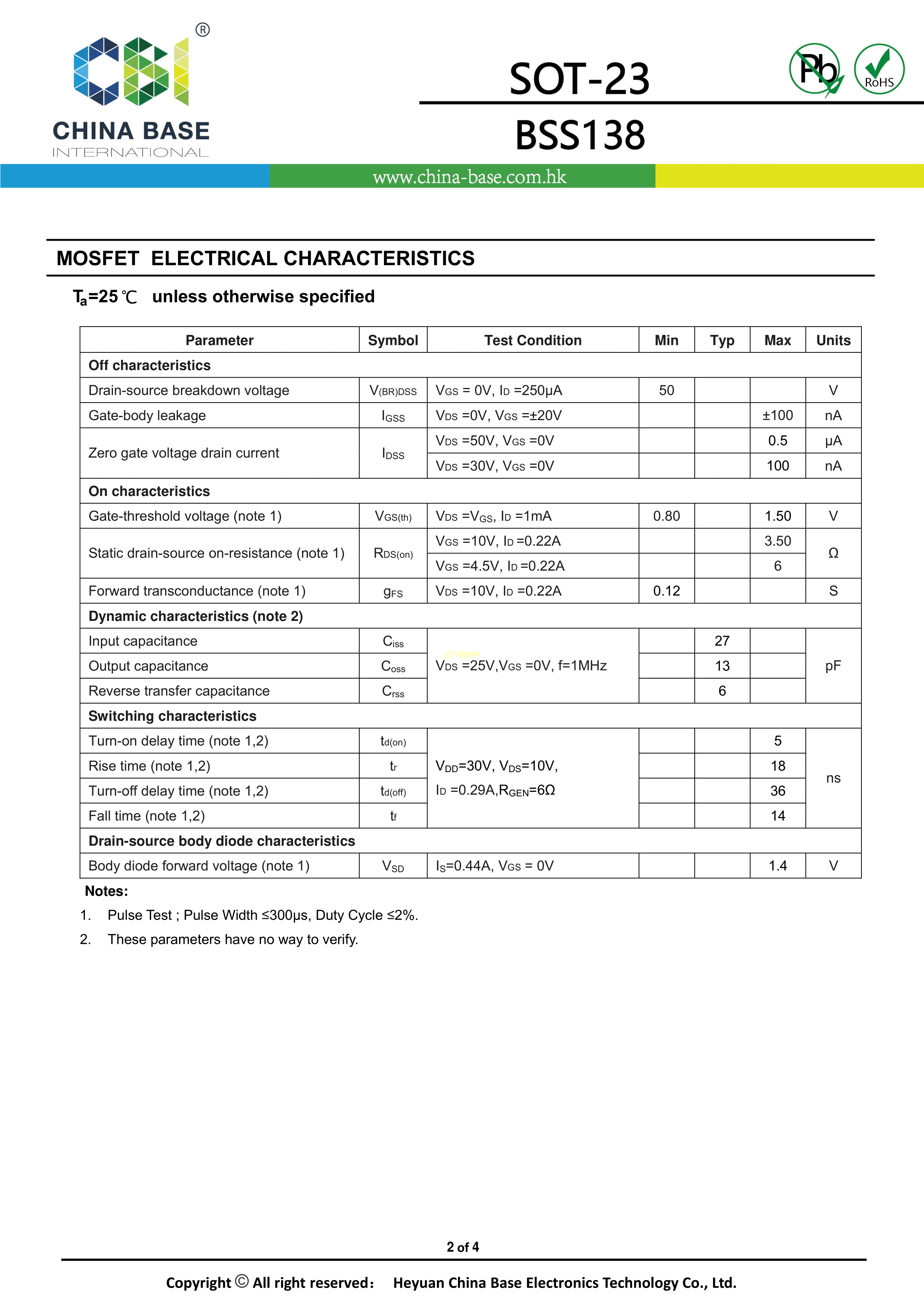 BSS138SS数据手册SOT-23封装CBI(创基)PDF规格书,中英文下载