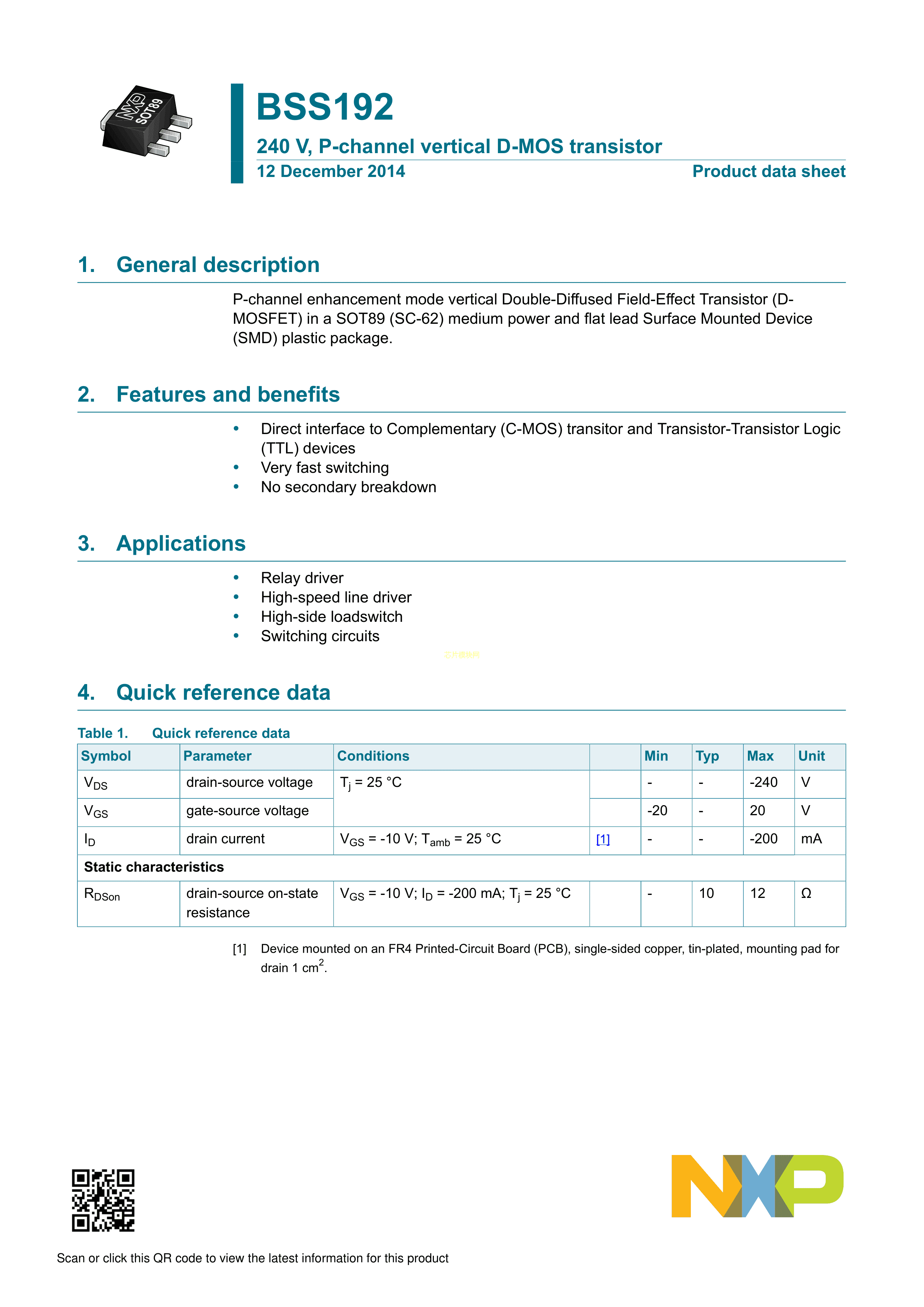 BSS192115数据手册SOT-89封装Nexperia(安世)PDF规格书,中英文下载